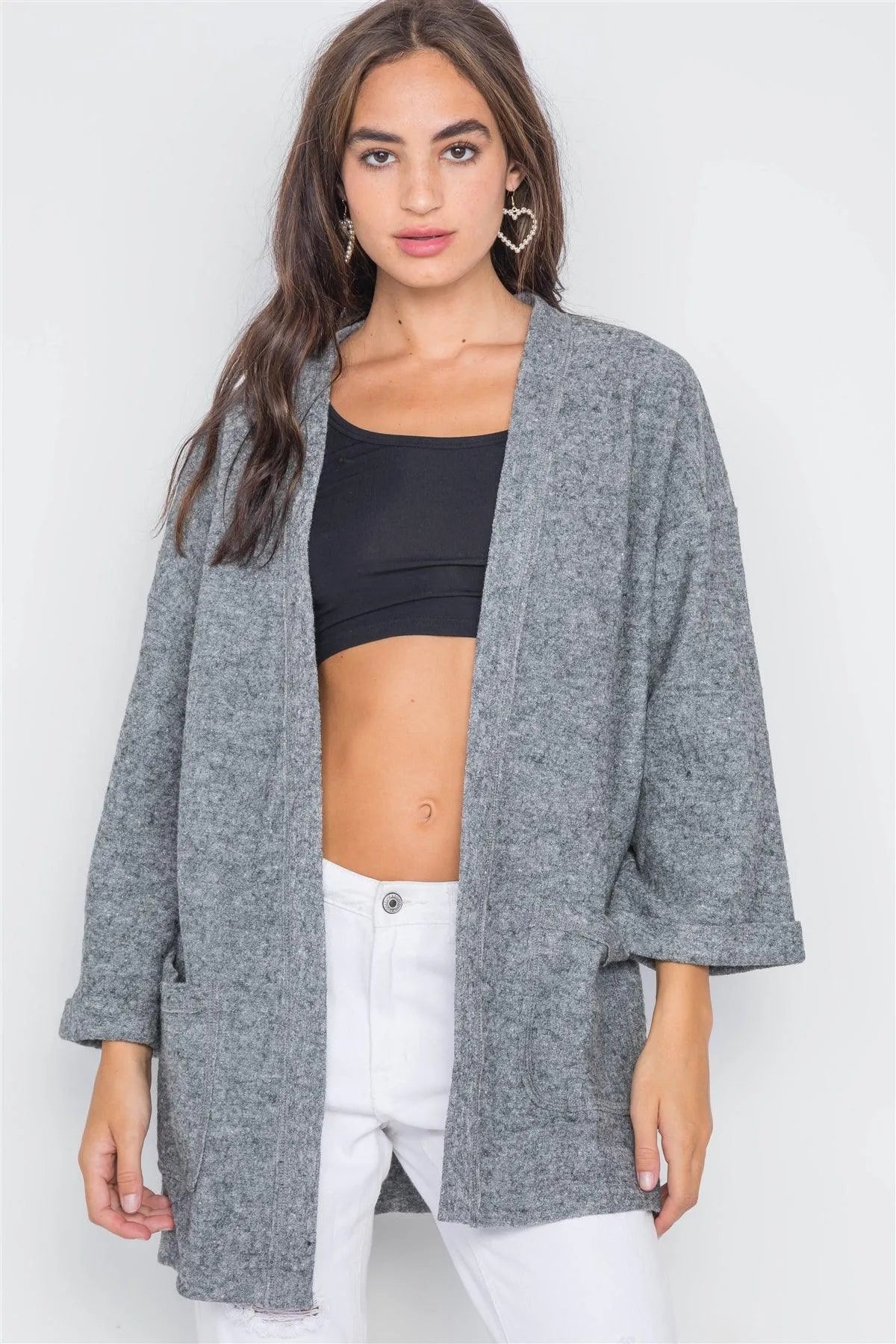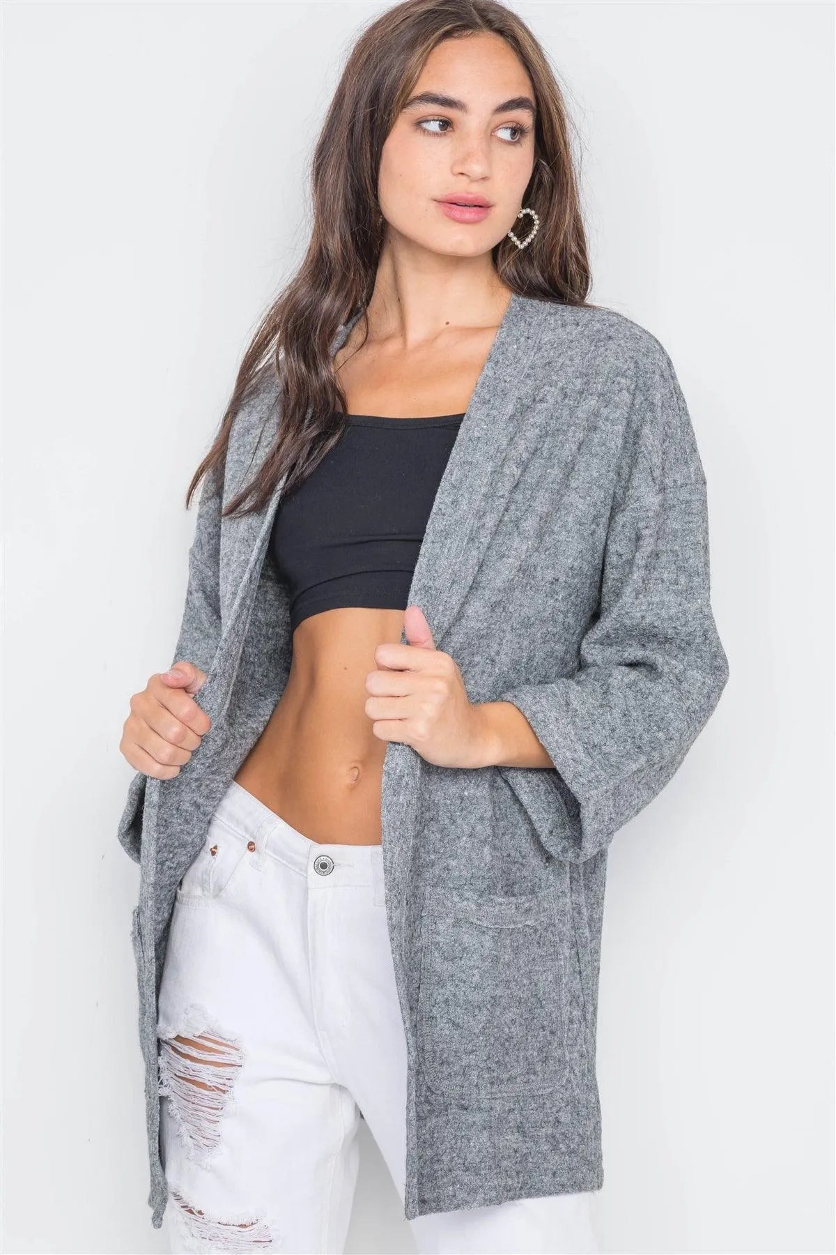Cardigan features: long sleeves, open front, front pockets, dropped shoulders, unlinedModel is 5'9 wearing a size Small (Waist: 24", Bust: 32A, Hips: 34")Size Small Item Measurements: Length: 31", Sleeves: 16"True to size