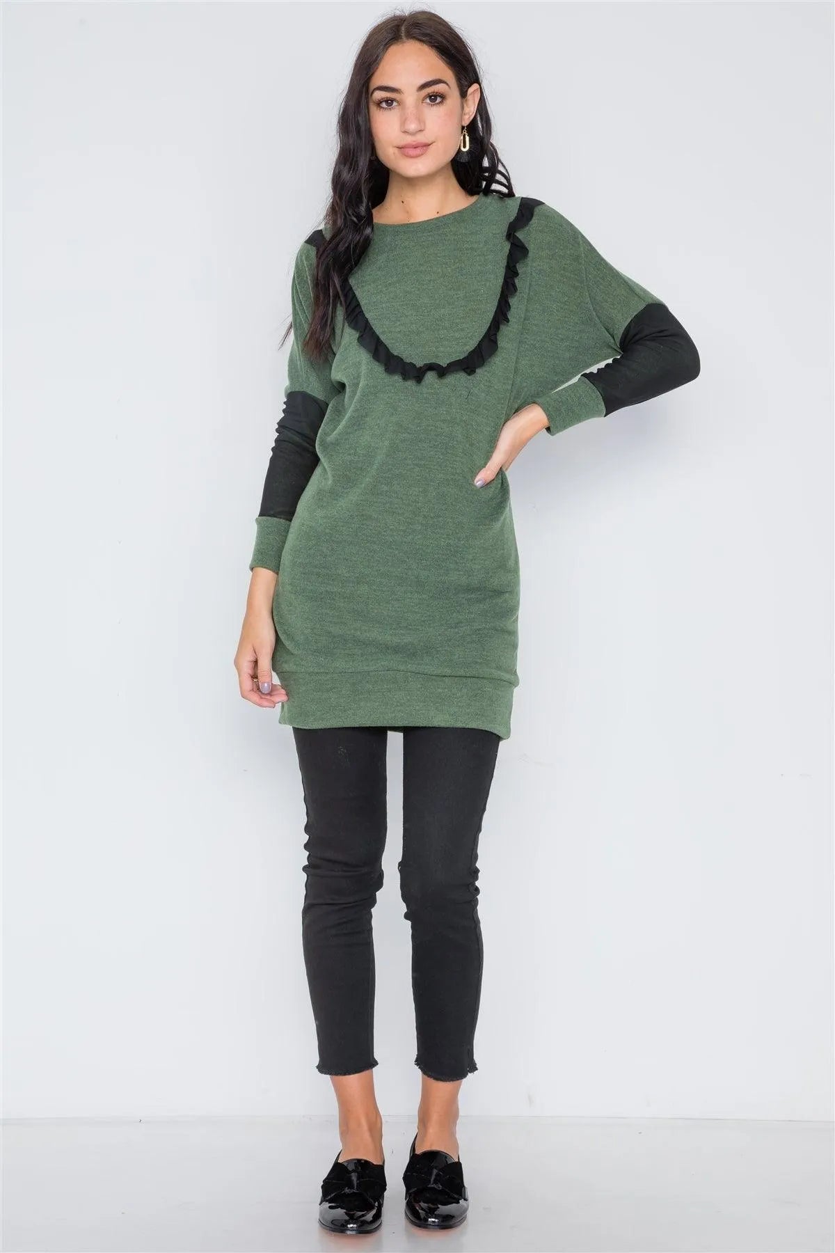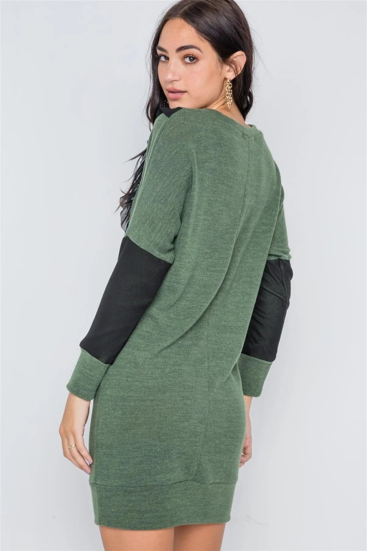 Heather Green Mash Detail Mini Sweater Dress /2-3-2
