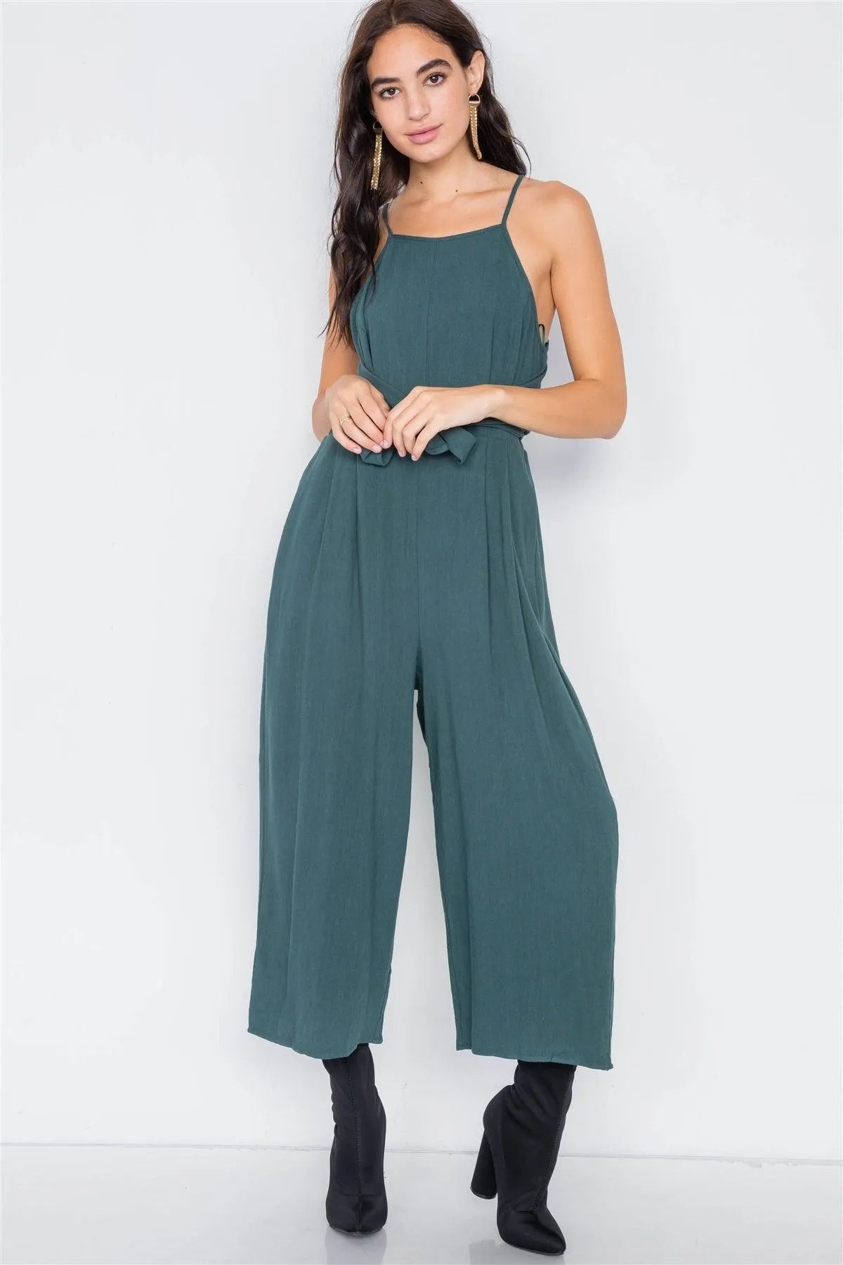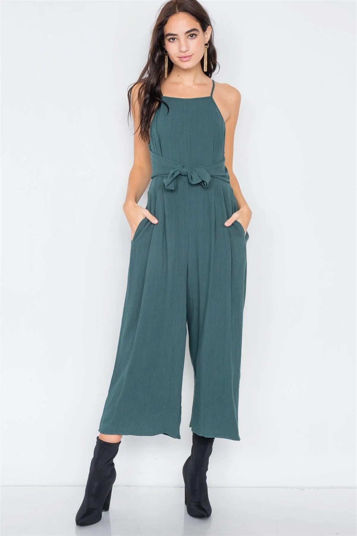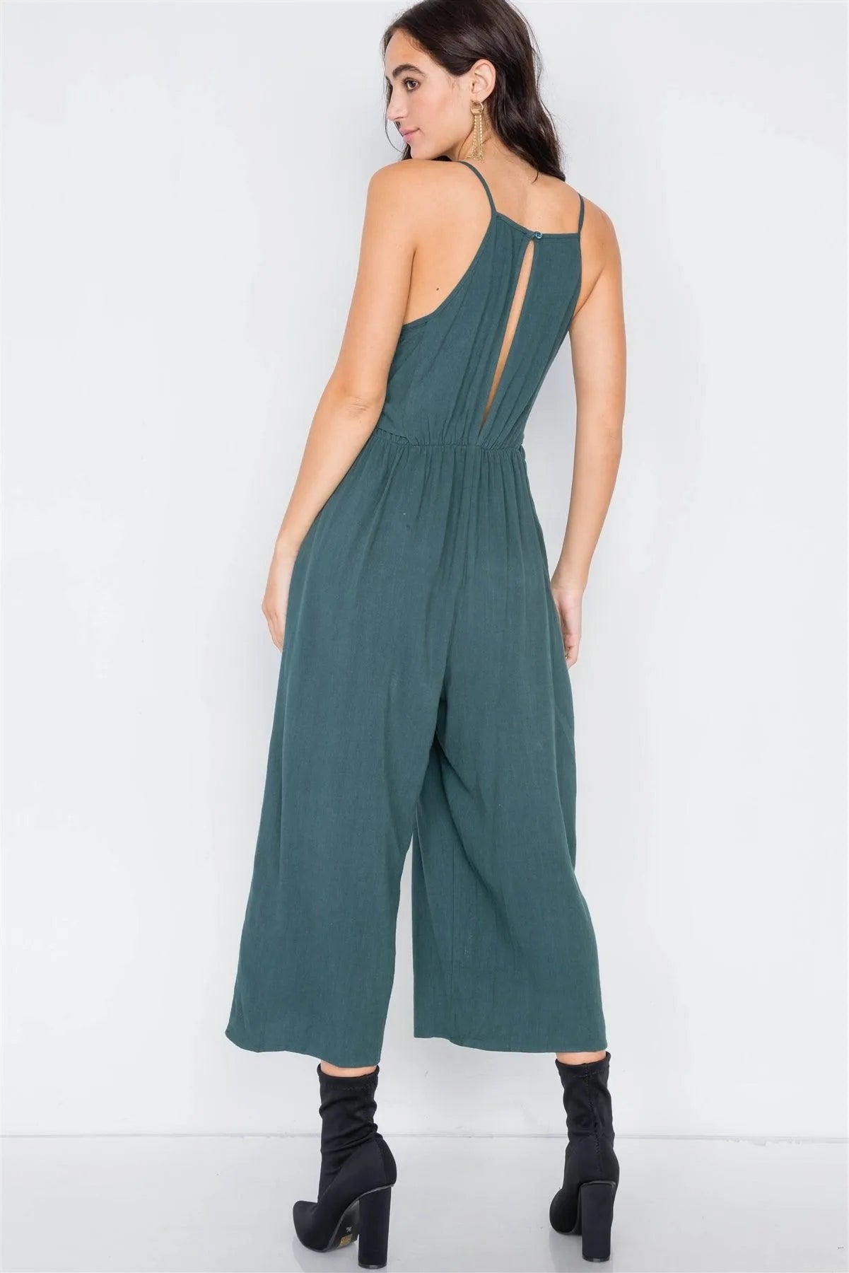 Heather Green Mock Wrap Pleated Gaucho Jumpsuit /2-2-2