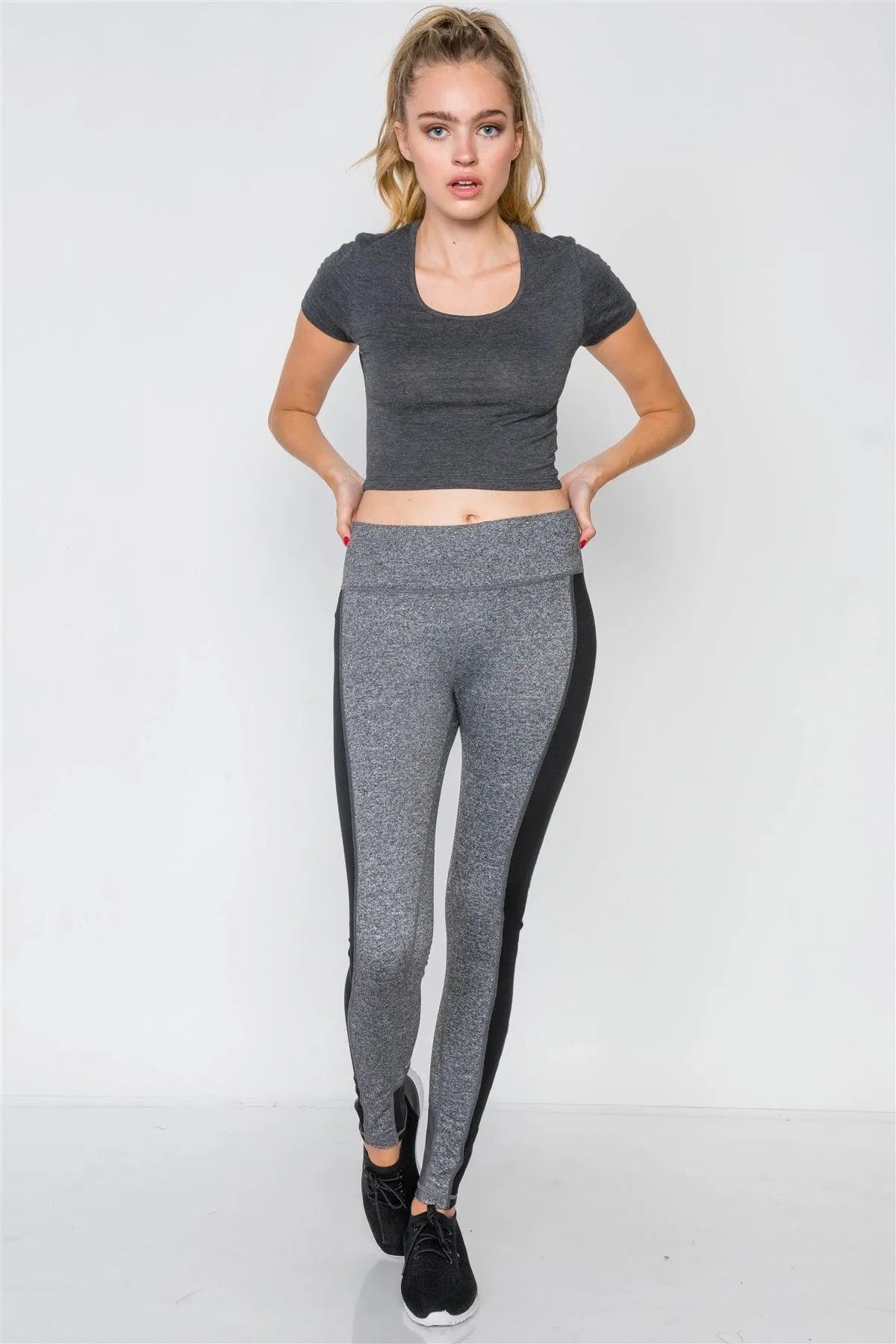 Silver Ribbed Stretchy Activewear Athletic Leggings /3-2-1Vendor:Doreli Group
