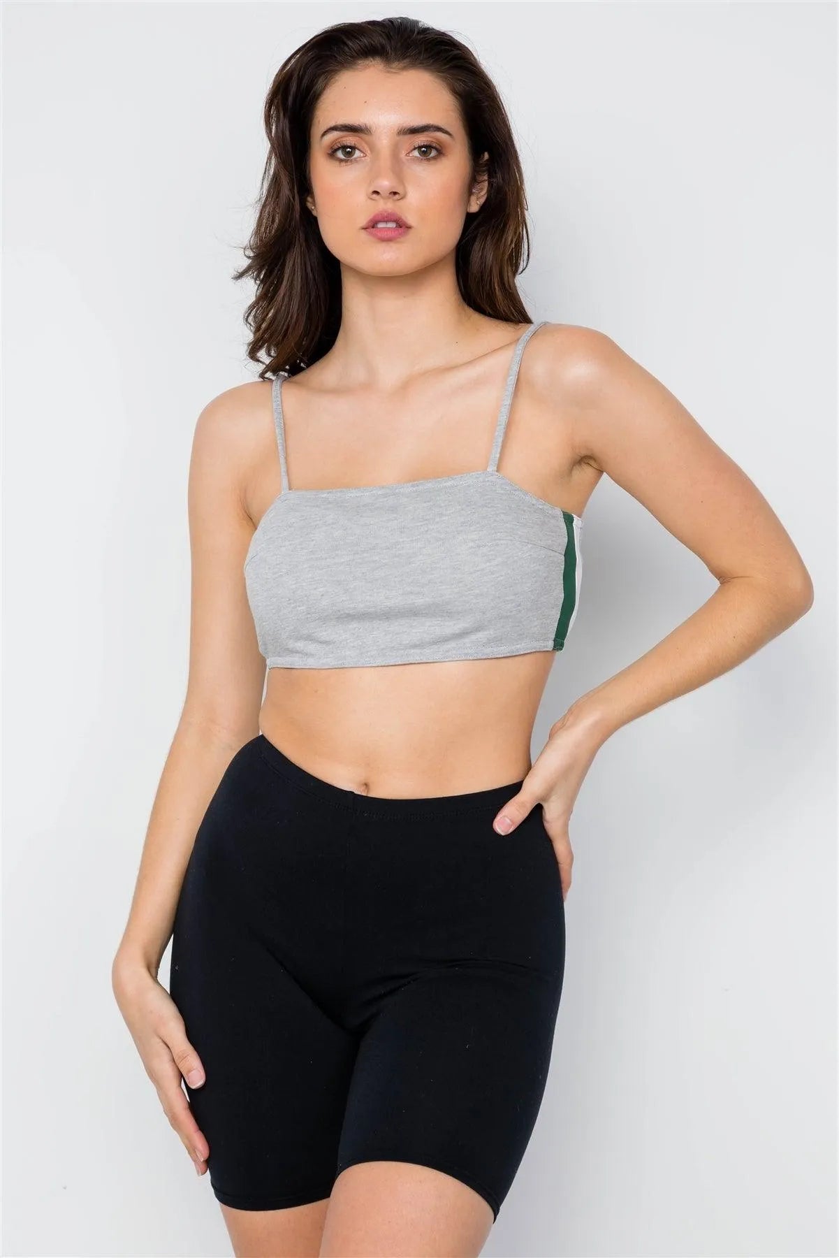 Heather Grey Cami Strap Contrast Crop Top / 1-2-2-1