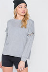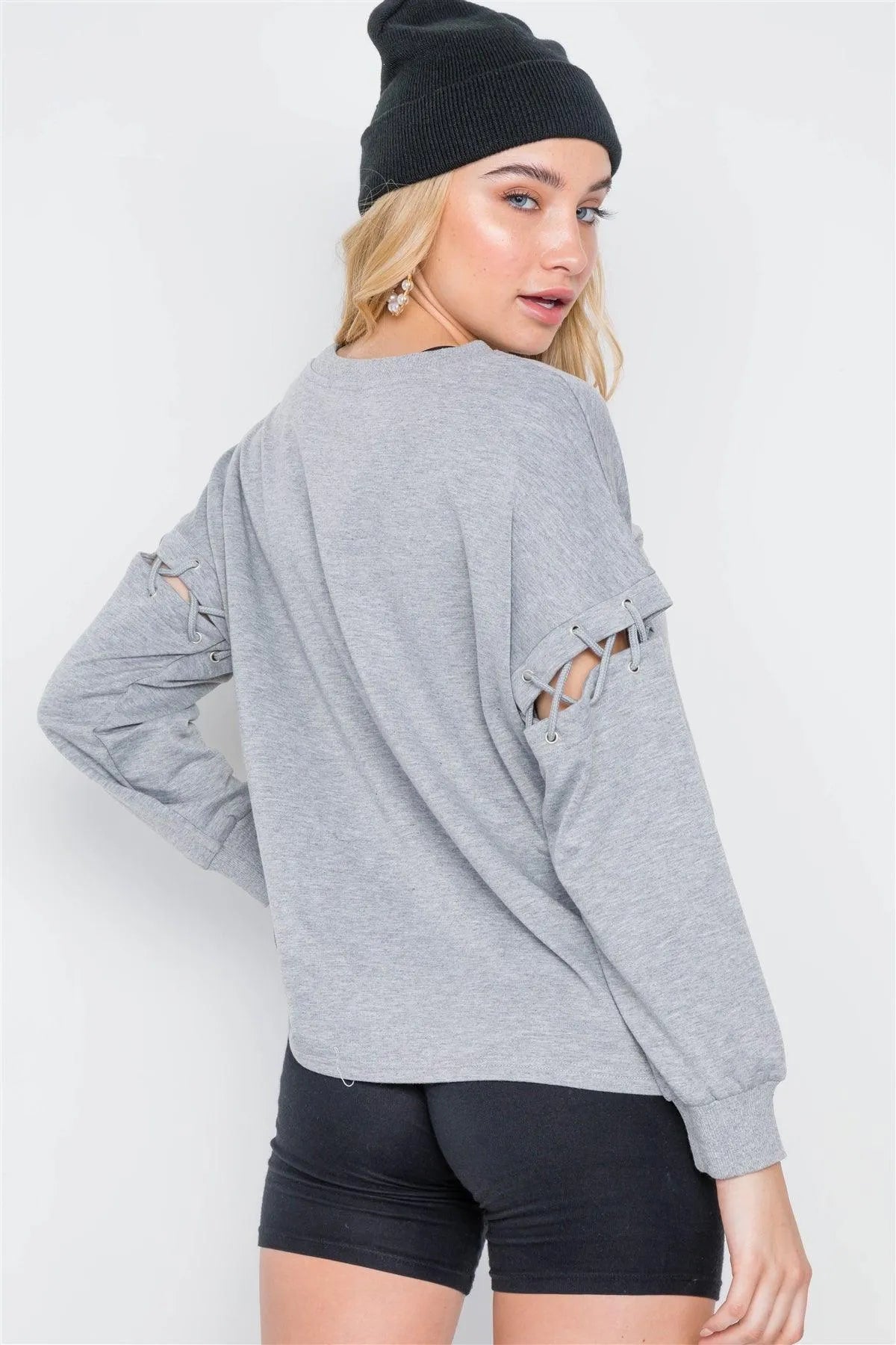 Heather Grey Laced Sleeves Solid Sweater /2-2-2