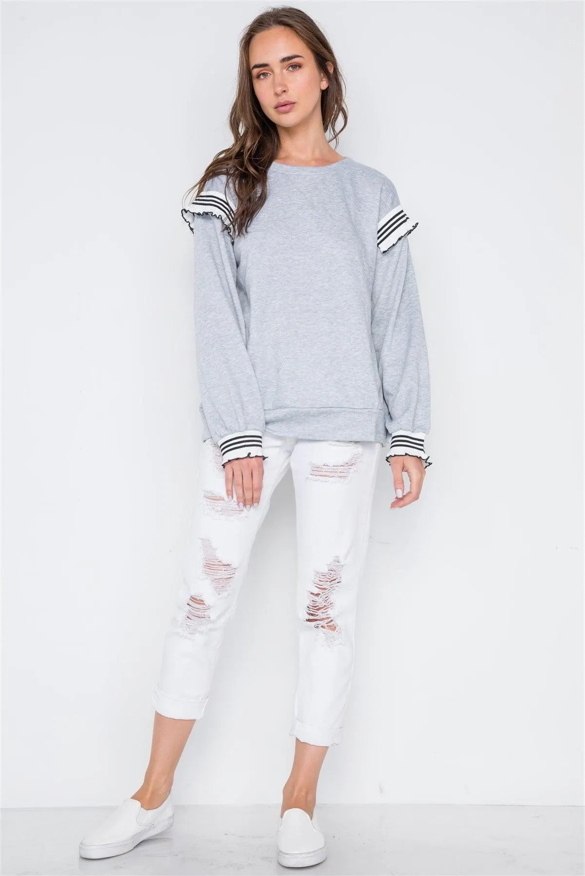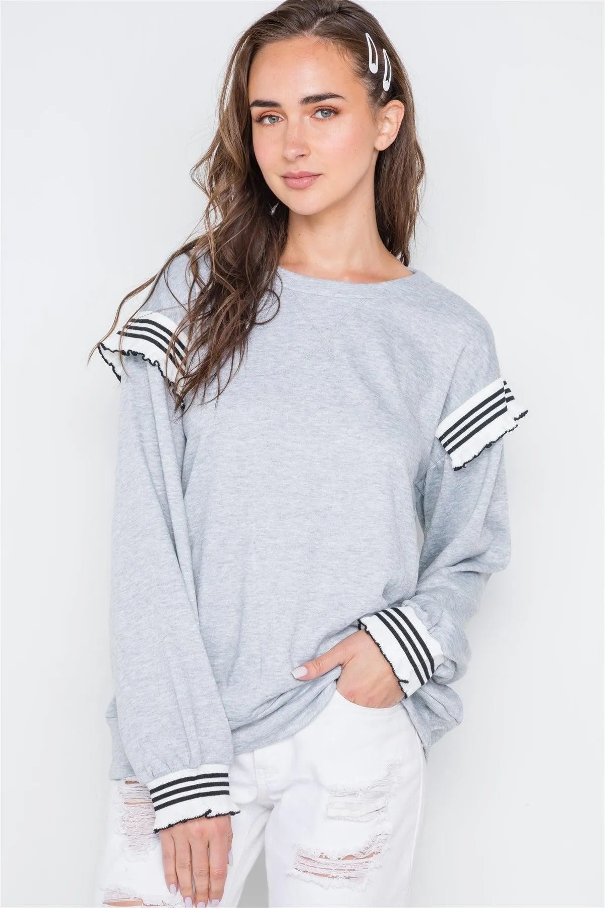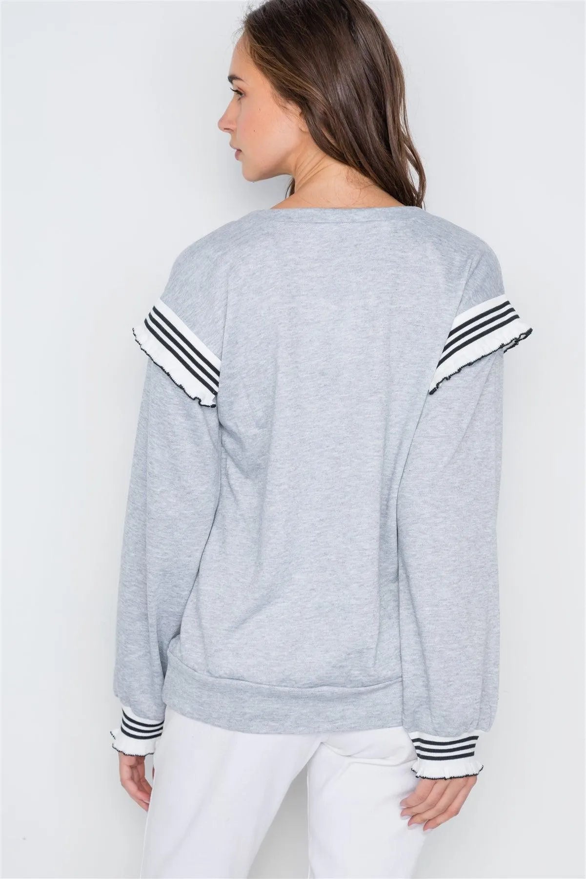 Heather Grey Long Sleeve Stripe Trim Sweater /2-2-2