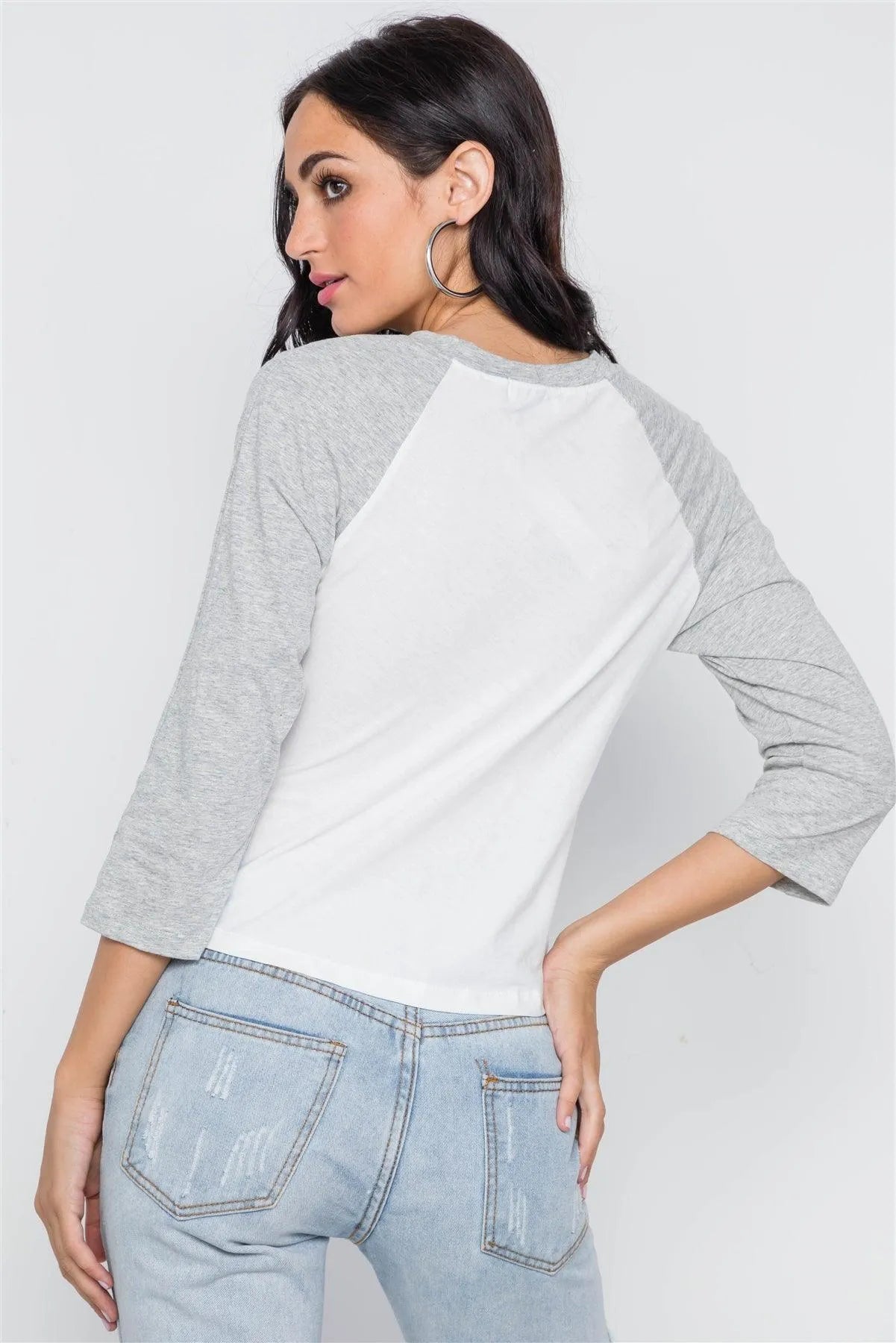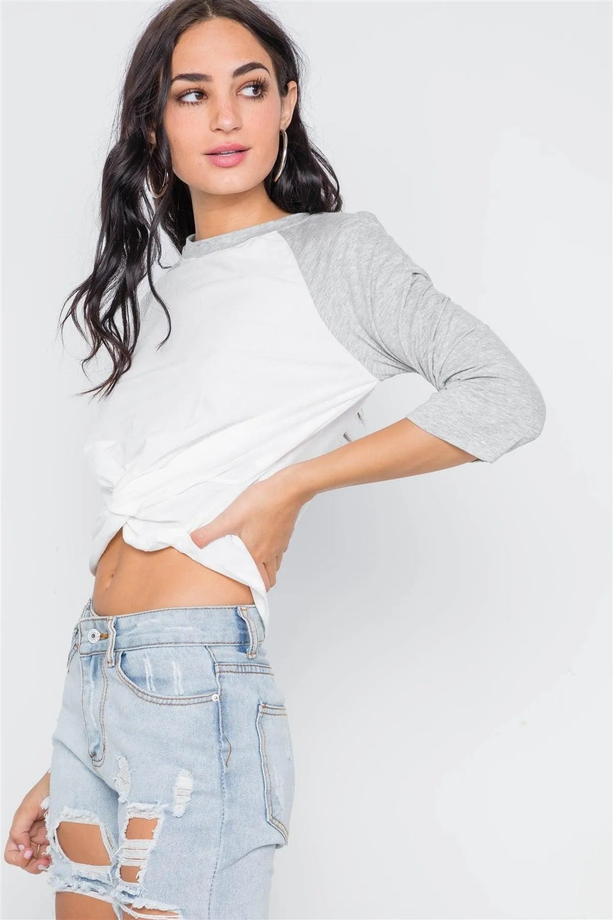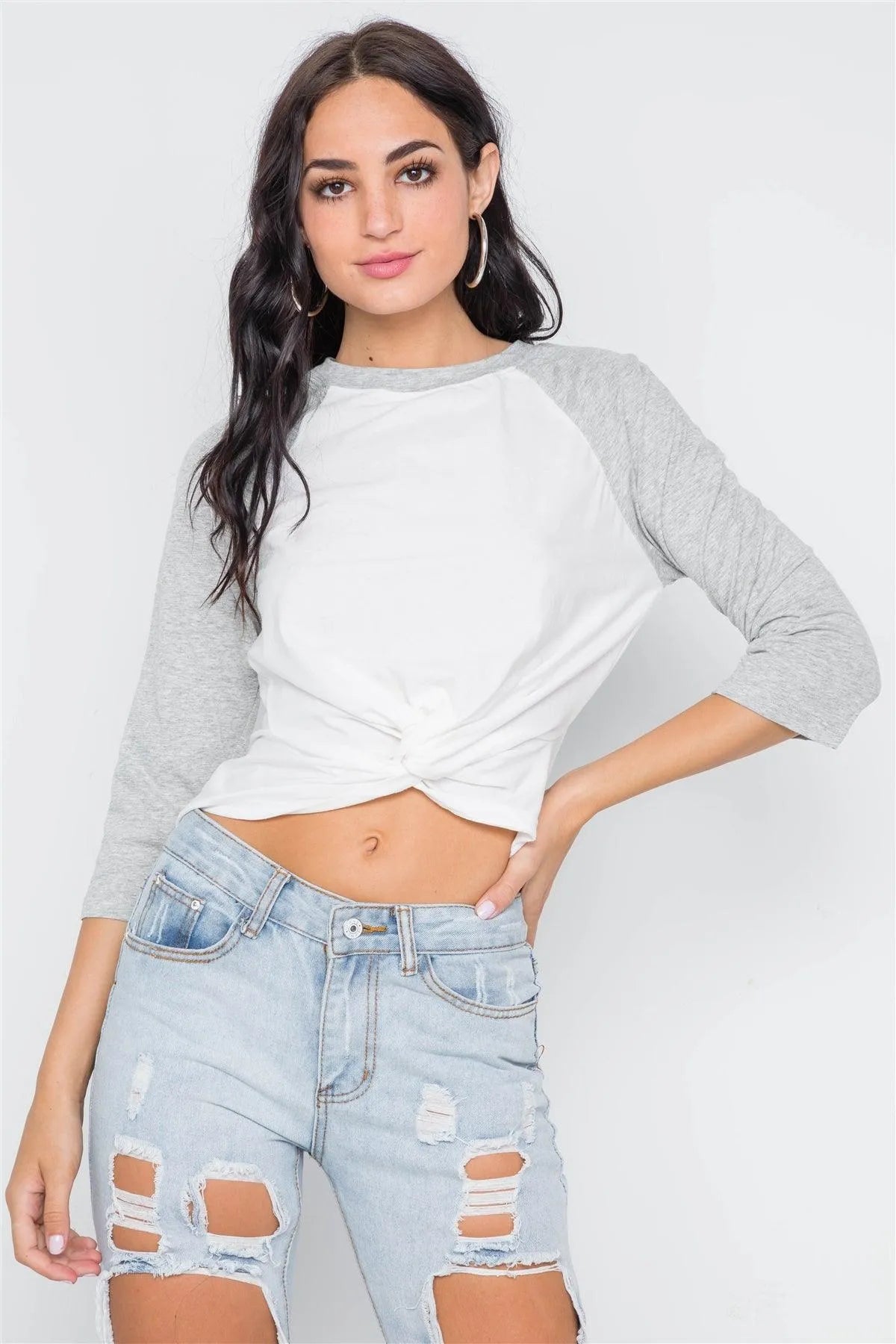 Heather Grey 3/4 Sleeves Front Twist Crop Top /3-2-1