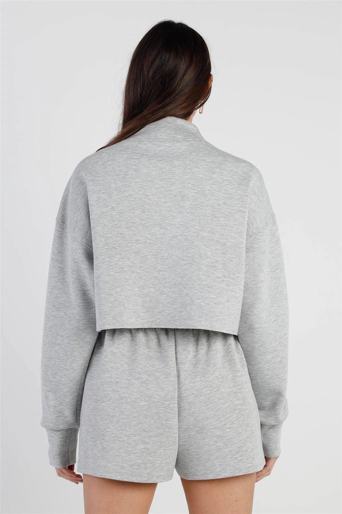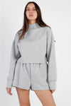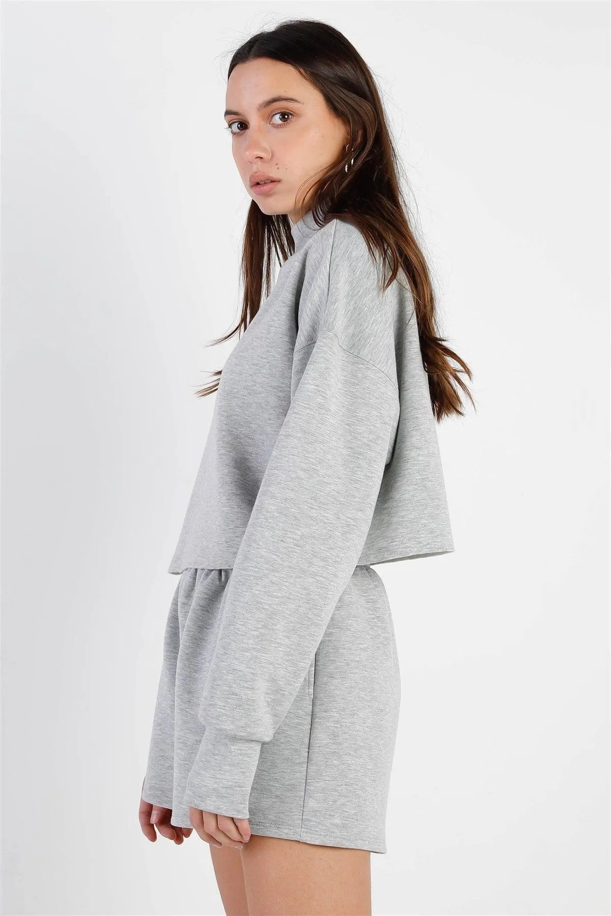 Heather Grey Mock Neck Crop Sweatshirt & High Waist Short Set /2-2-2