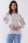 🖤Item Features: Heather grey, ribbed, round neckline, self-tie cut-out shoulder, long cuffed sleeve, unlined, regular fit, stretchy, non-sheer, casual, lounge, comfy, warm, stylish, cute, spring/summer collection