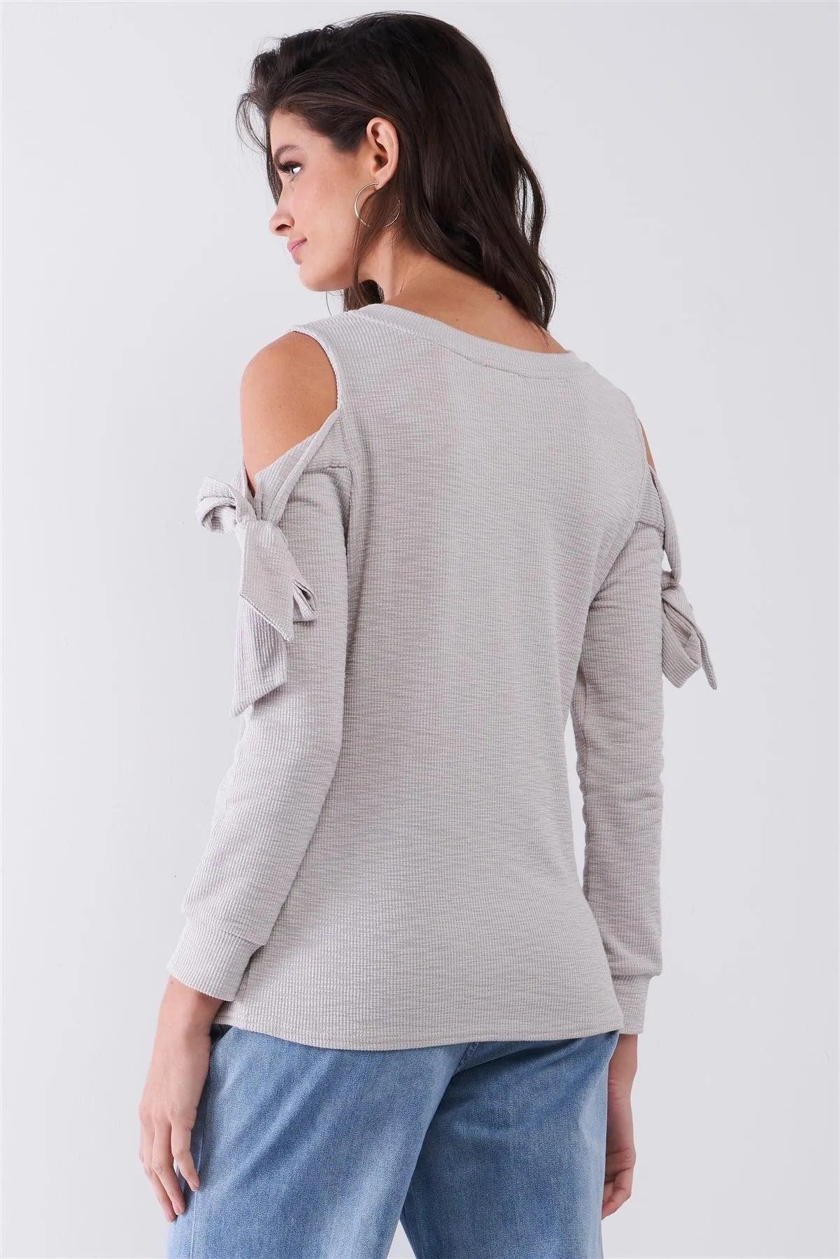 🖤Item Features: Heather grey, ribbed, round neckline, self-tie cut-out shoulder, long cuffed sleeve, unlined, regular fit, stretchy, non-sheer, casual, lounge, comfy, warm, stylish, cute, spring/summer collection