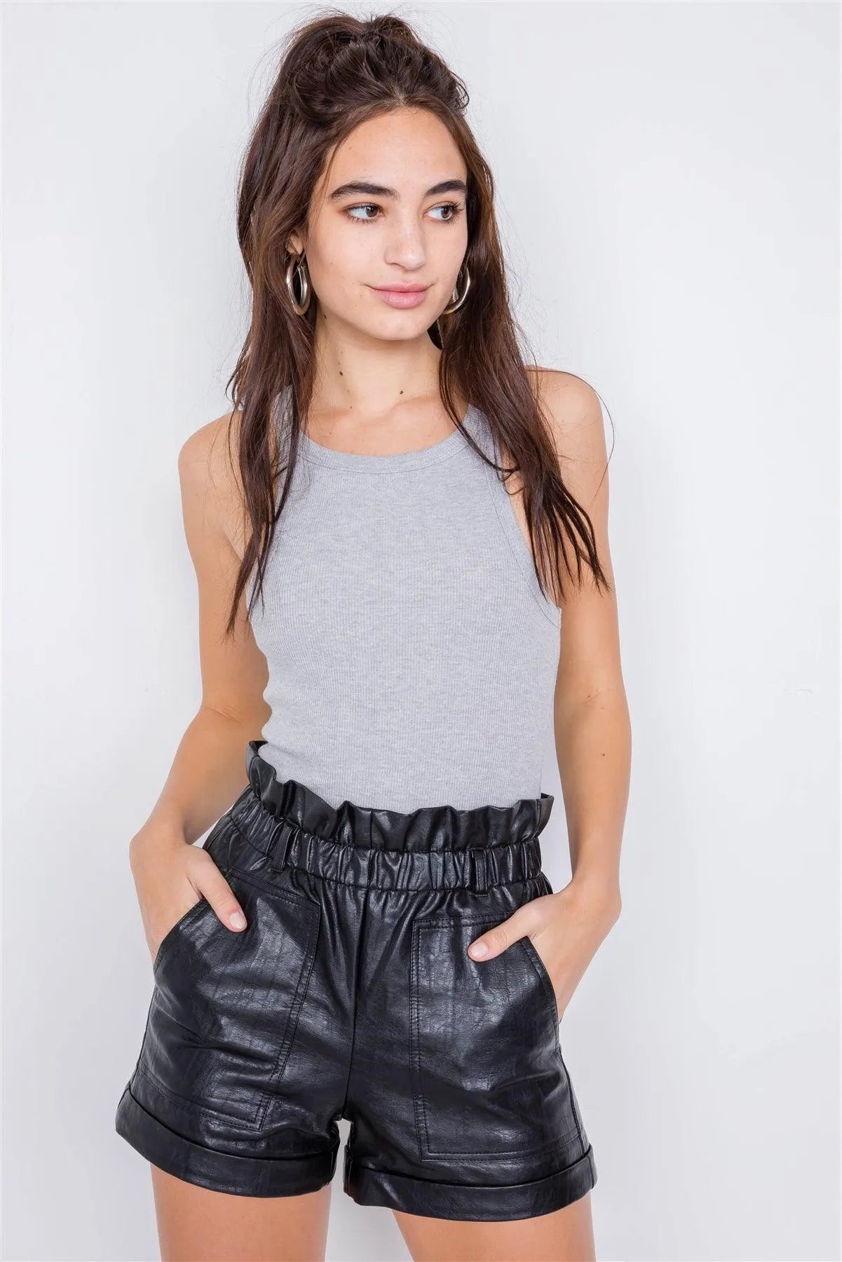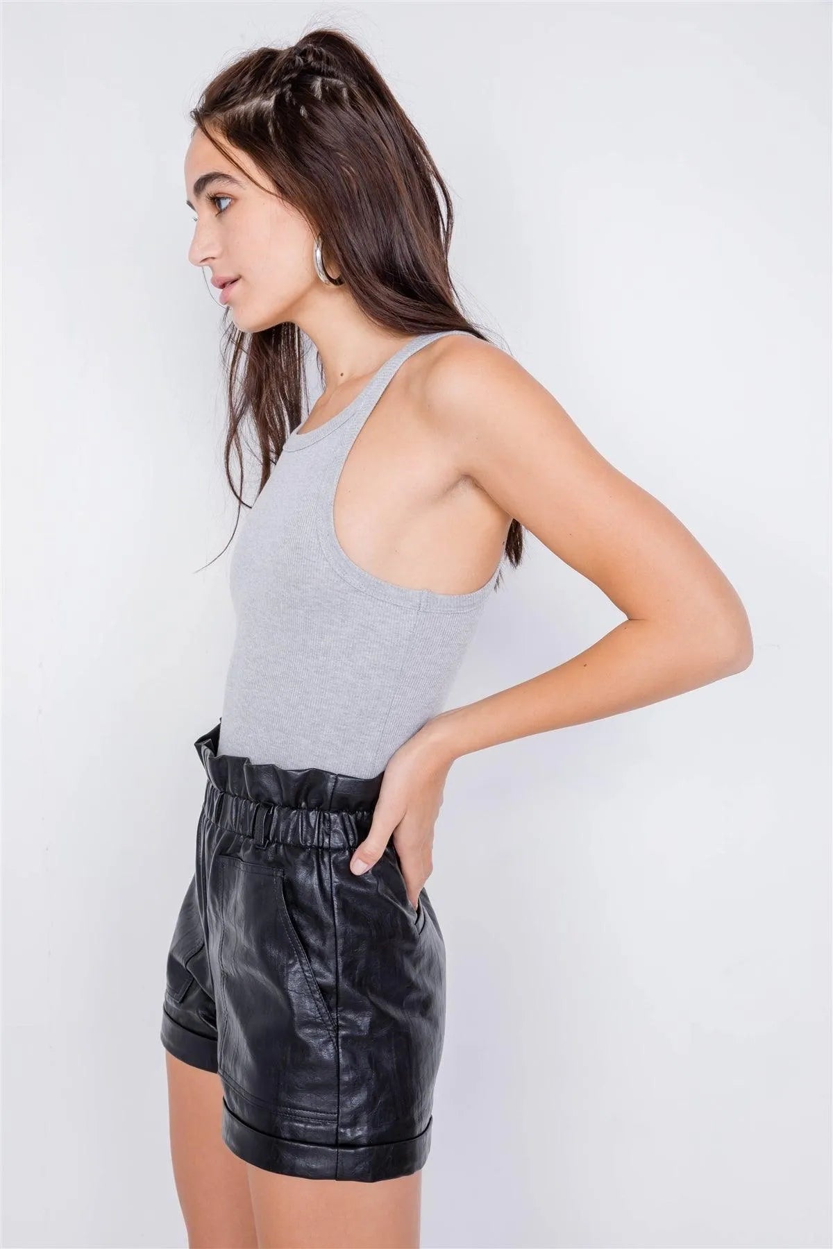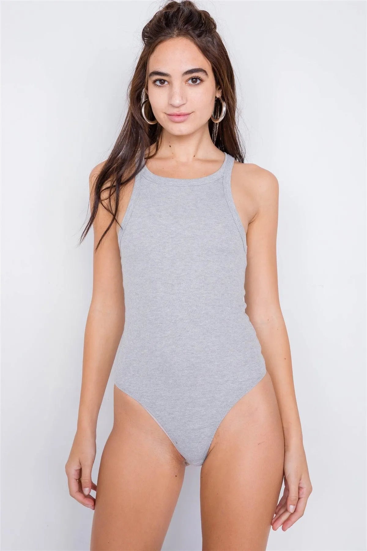 Heather Grey Ribbed Solid Casual Cotton Bodysuit /3-2