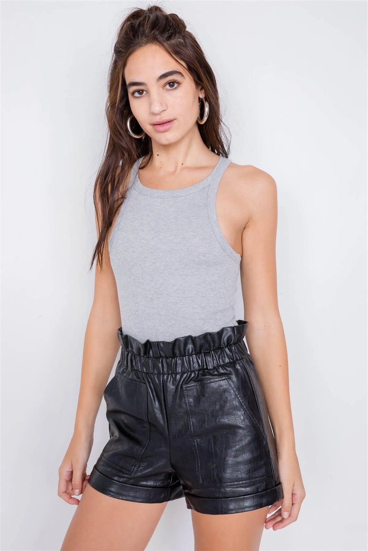 Ribbed Back Criss Cross Sleeveless BodysuitVendor:Le Lis