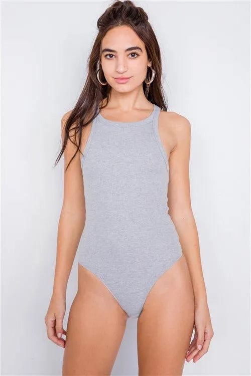 Heather Grey Ribbed Solid Casual Cotton Bodysuit /3-2-1