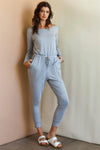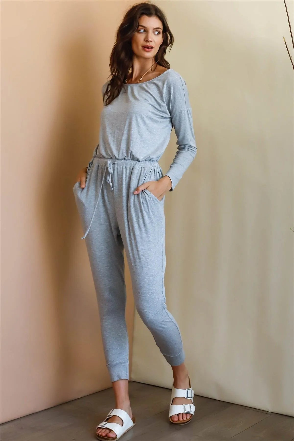 Heather Grey Round Neck Fitted Waistline Two Pocket Jumpsuit /1-1-1