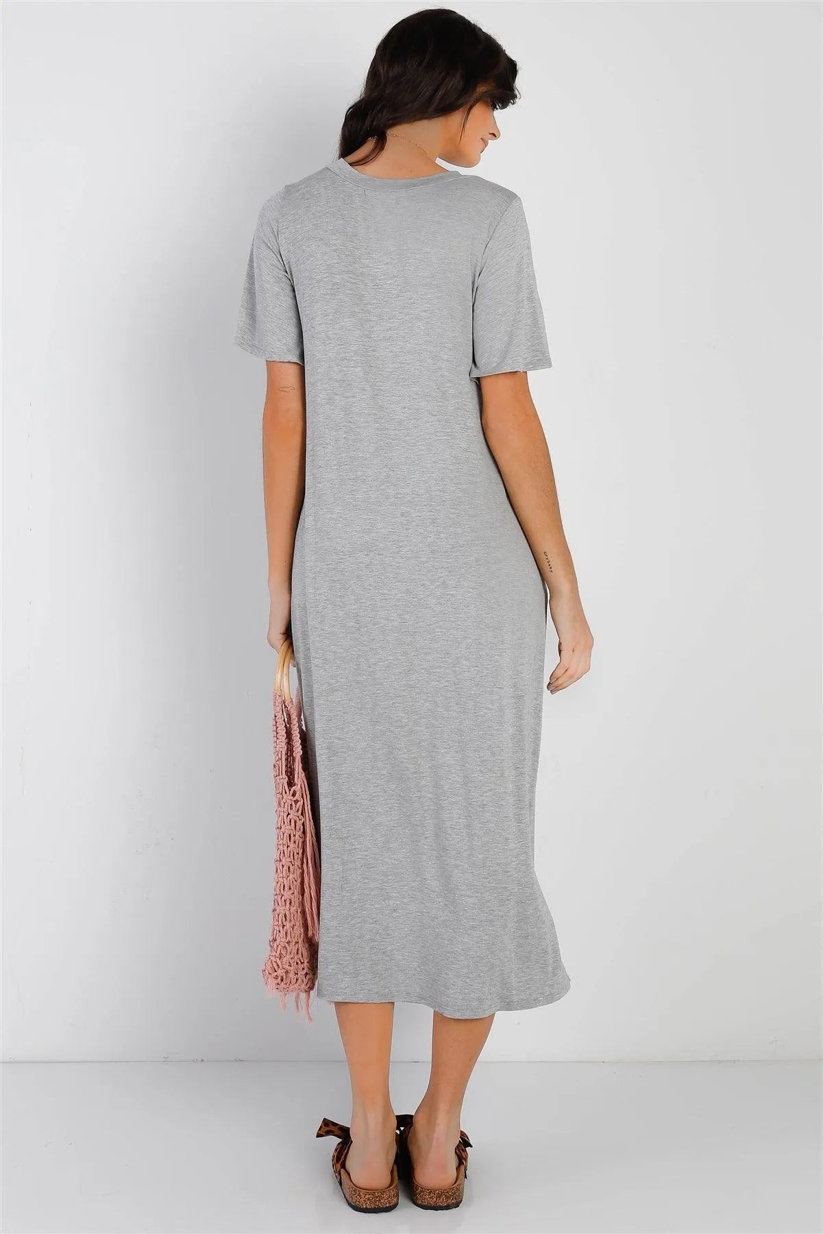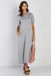 Heather Grey Short Sleeve Midi Dress /1-1-1