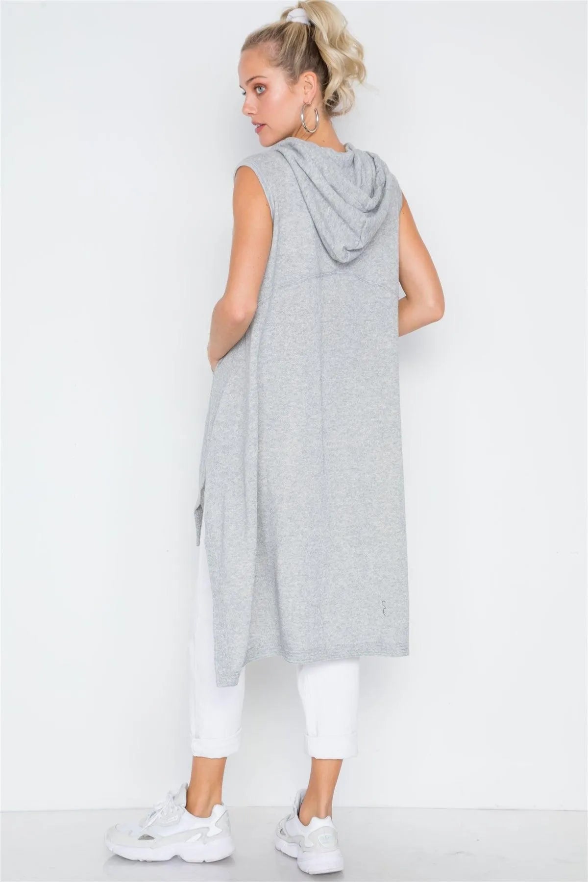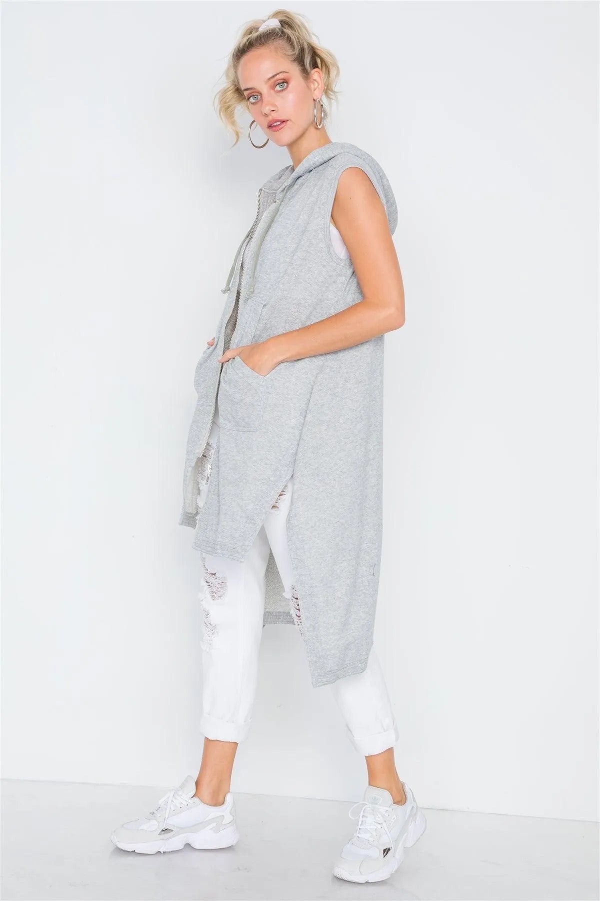 Heather Grey Sleeveless Zip-Up Hooded Knit Vest