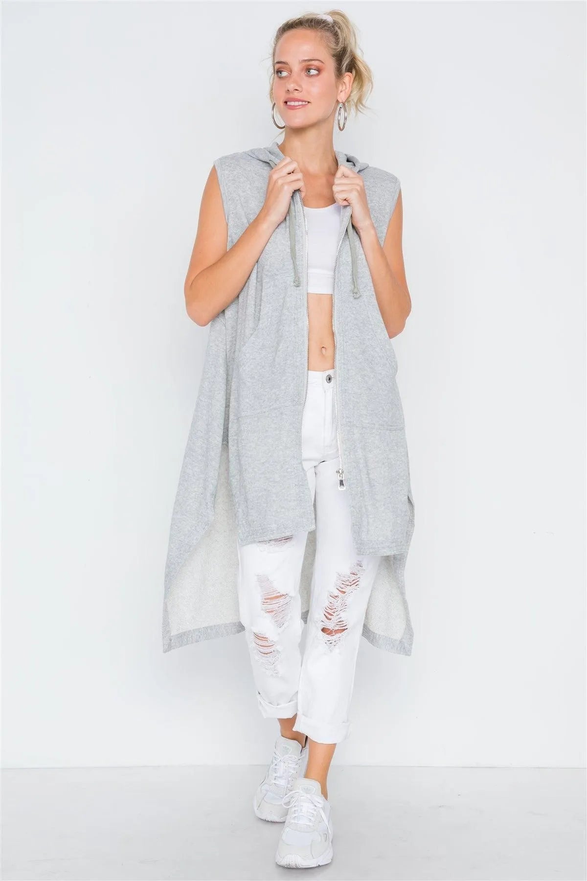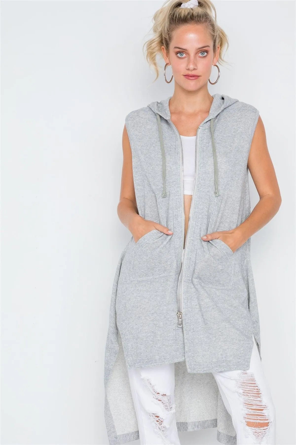 Heather Grey Sleeveless Zip-Up Hooded Knit Vest /3-1-1