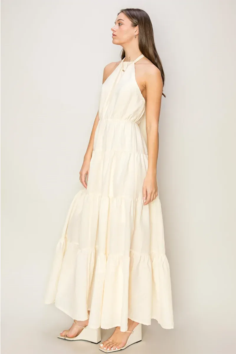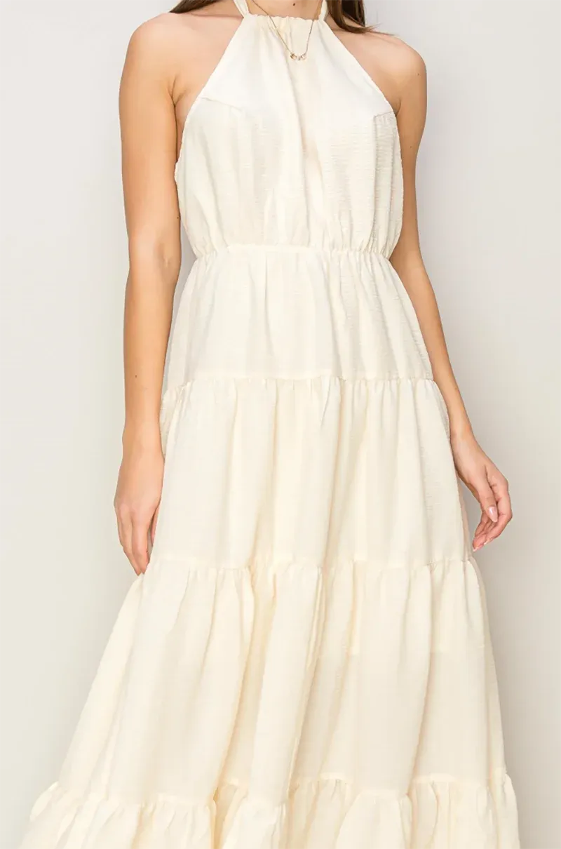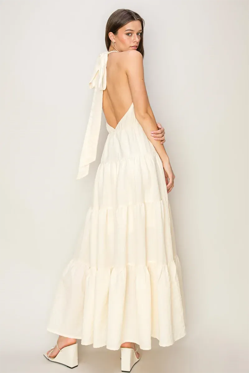 This halter tiered backless maxi dress combines elegance and comfort, making it a perfect choice for various occasions. The design features a flattering halter neckline that accentuates the shoulders, while the tiered layers create a flowing silhouette that enhances movement. The backless detail adds a touch of allure, making it ideal for warm-weather events or evening outings. Crafted from lightweight, breathable fabric, this dress ensures both style and ease, allowing the wearer to feel confident and chic.