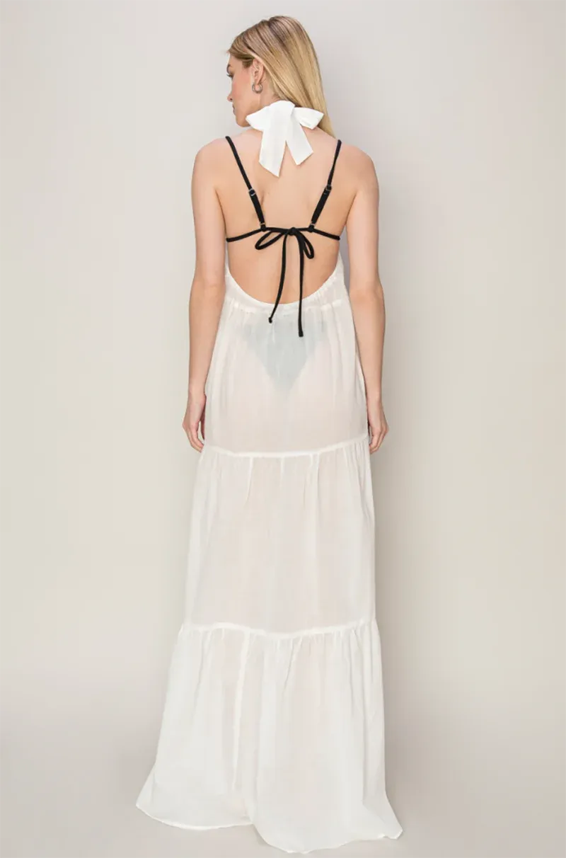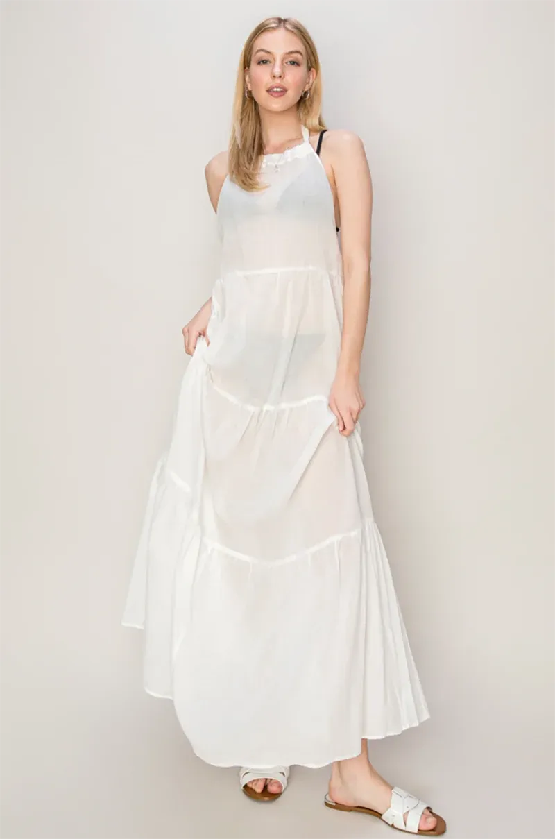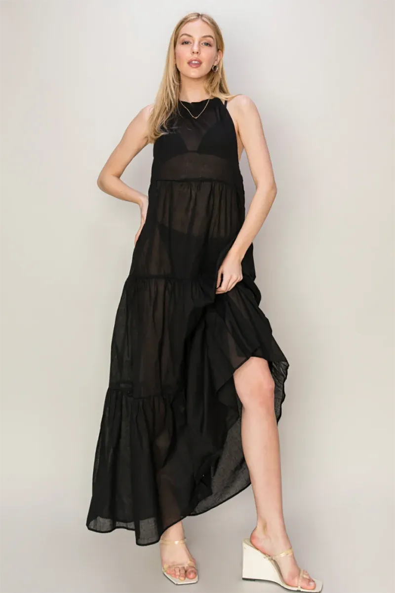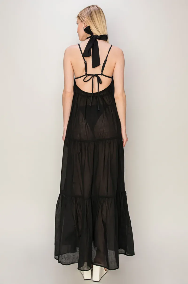 Tiered Semi Sheer Halter Neck Cover Up Maxi Dress