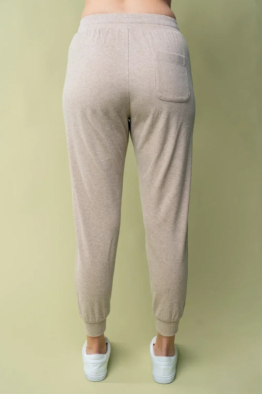Soft Ribbed Knit Elastic Waist Cozy Lounge Jogger PantsVendor:White Birch