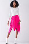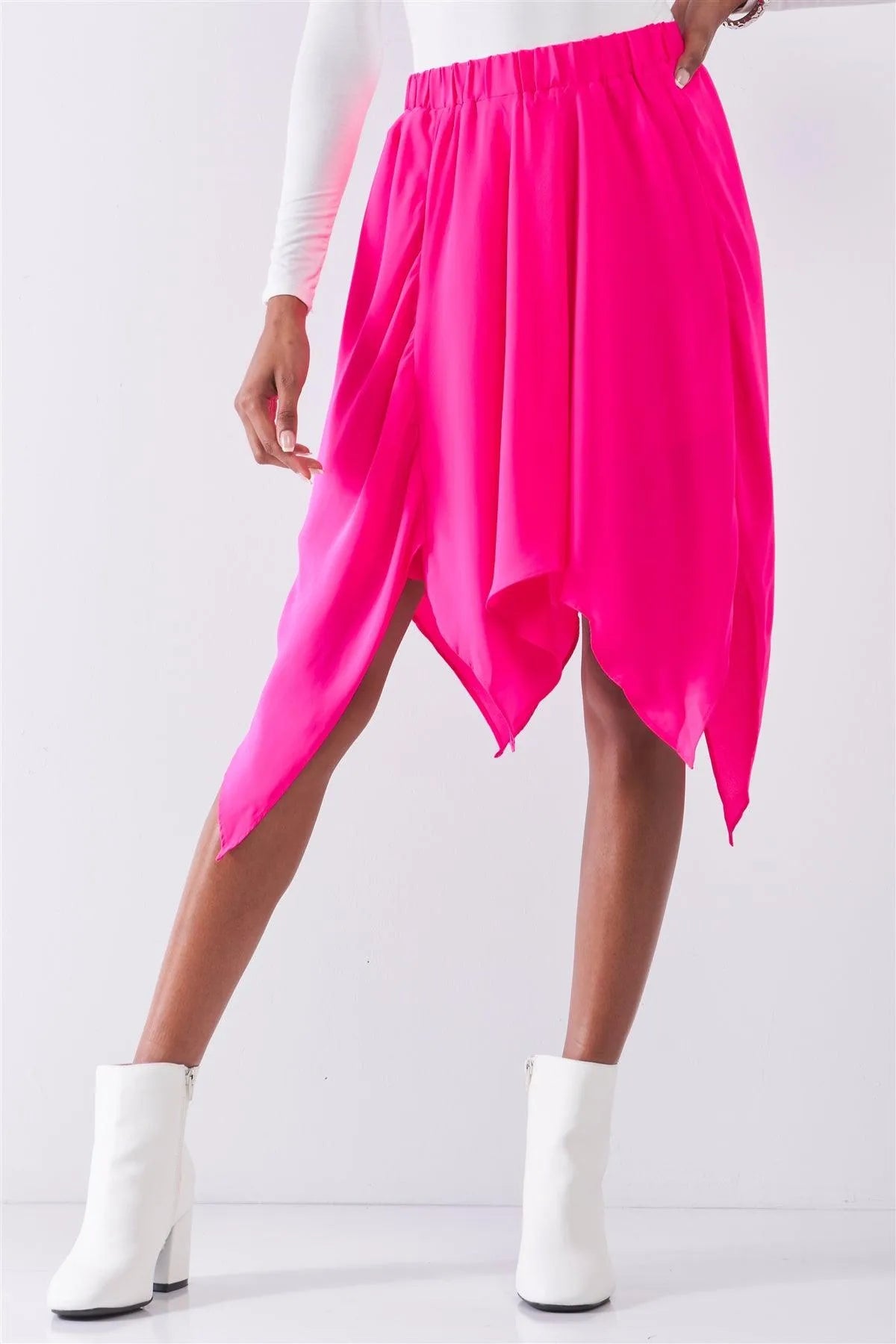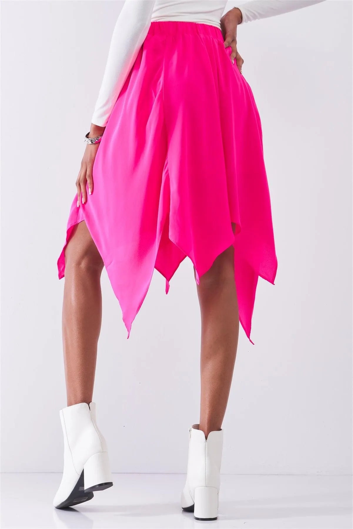 🖤Item features: Hot pink, solid, elasticized high waist, chiffon, leafy design (downward pointy leaf detail), midi length, lined, non-stretch, uneven hems, flowy & flare fit, casual, girly, color pop, cute, date look, romantic, spring/summer collection