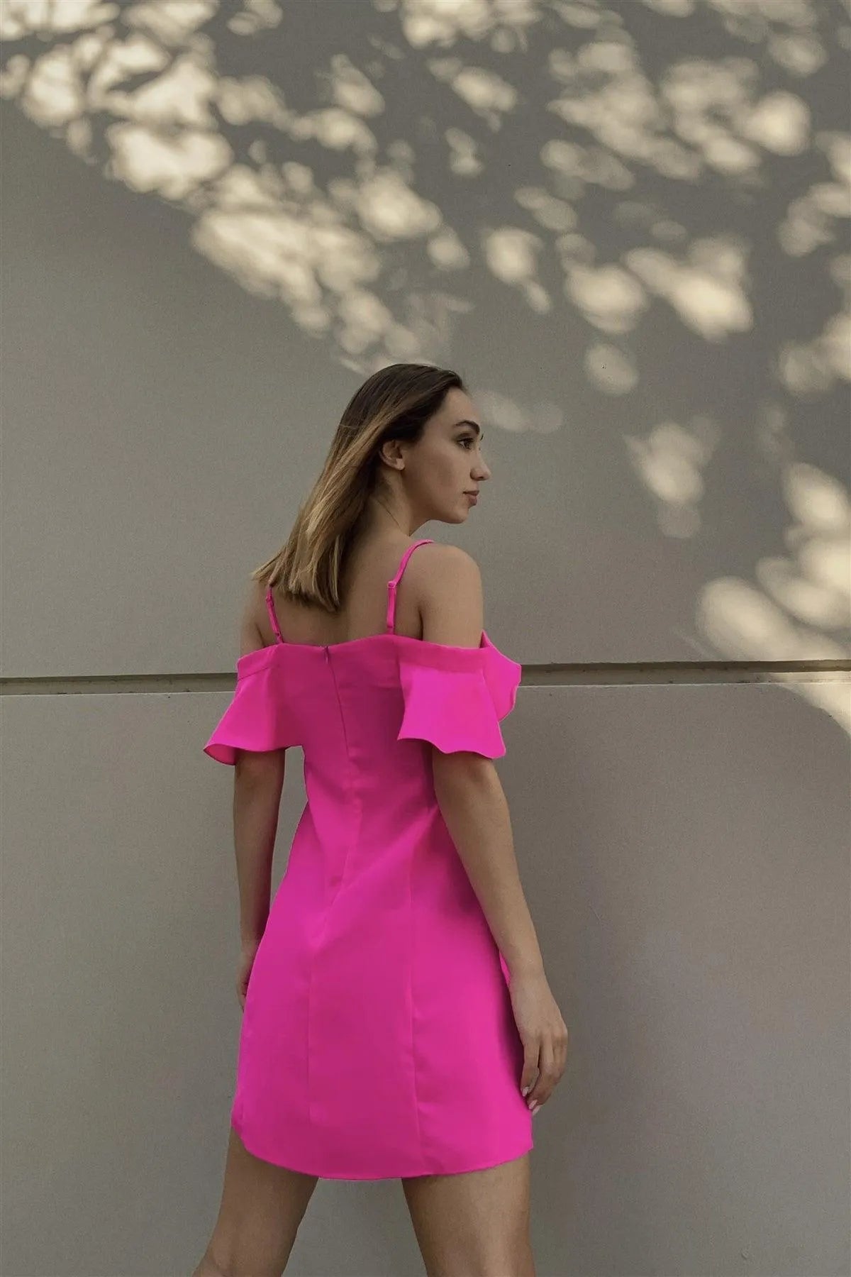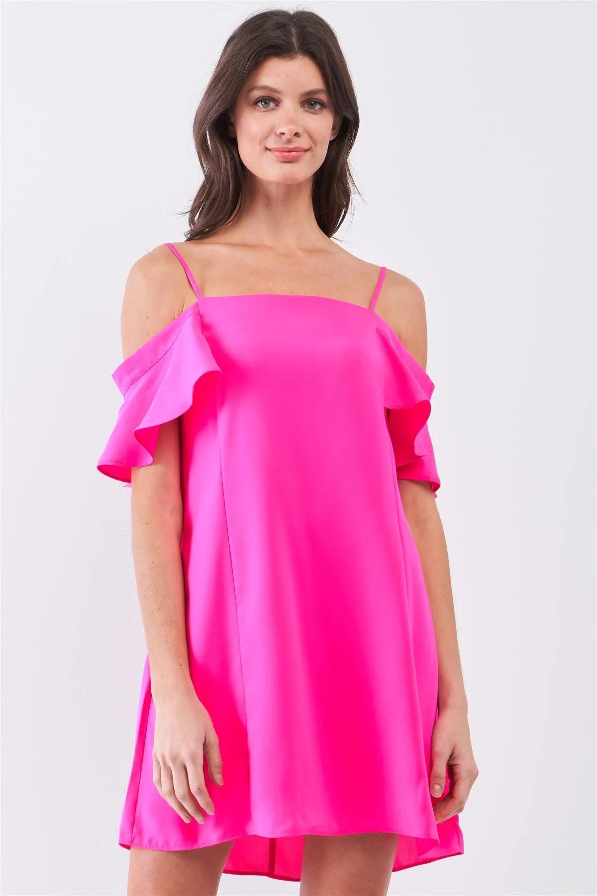Hot Pink Cold Shoulder Ruffle Mini Shift Dress /1-2-2-1