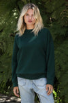 🖤 Item Features: Hunter green, solid color, cotton material, crew neckline, long cuffed sleeves, dropped shoulders, cuffed hem, brushed lining, non-stretchy, not see through, casual, cute, everyday look, warm, cozy, stylish, must have