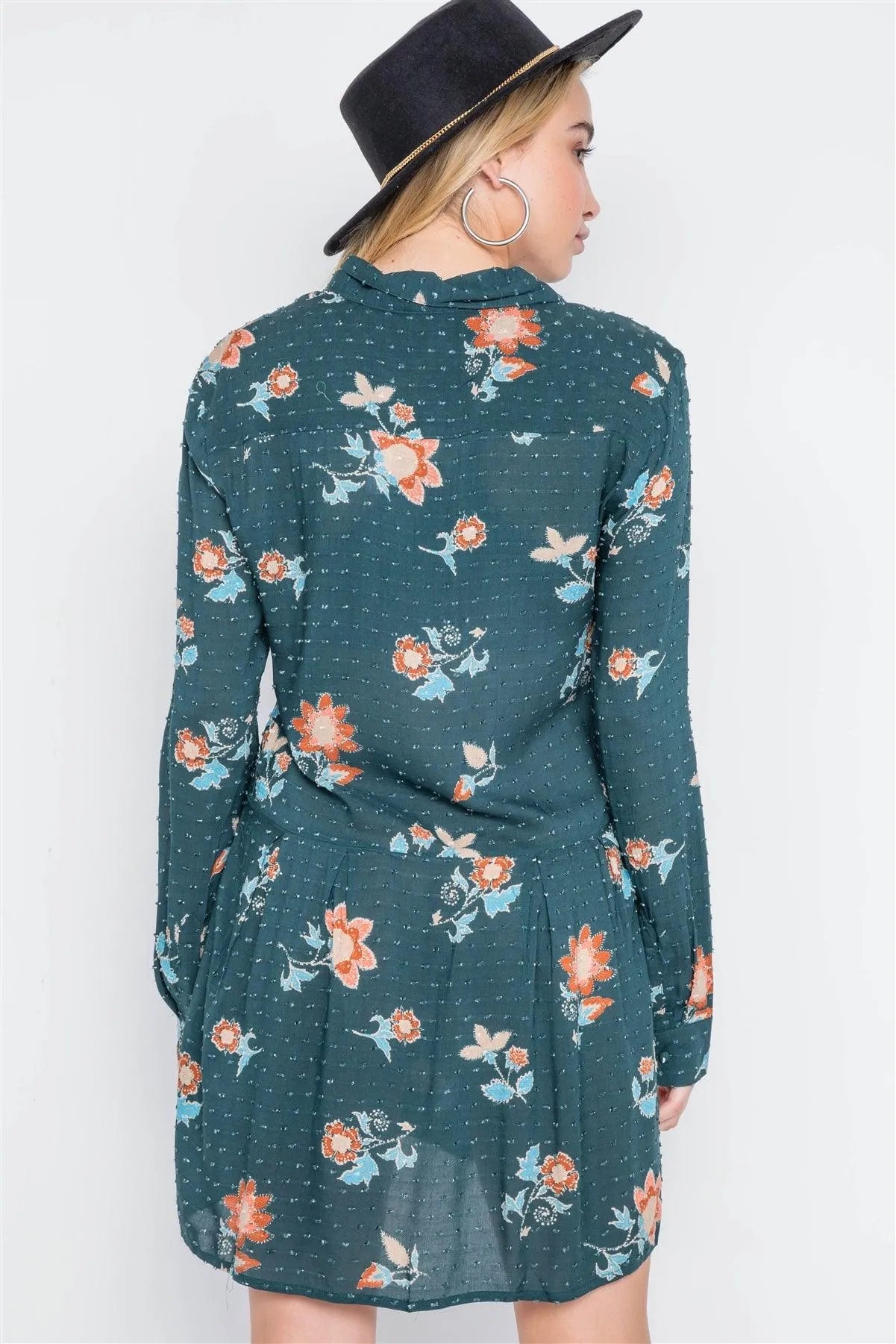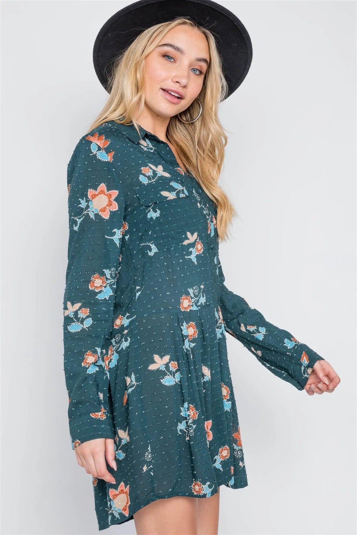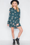 Hunter Green Floral Button-Front Shirt Dress /2-1-2