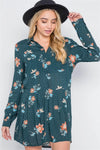 Hunter Green Floral Button-Front Shirt Dress /2-2-2