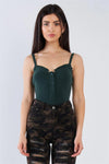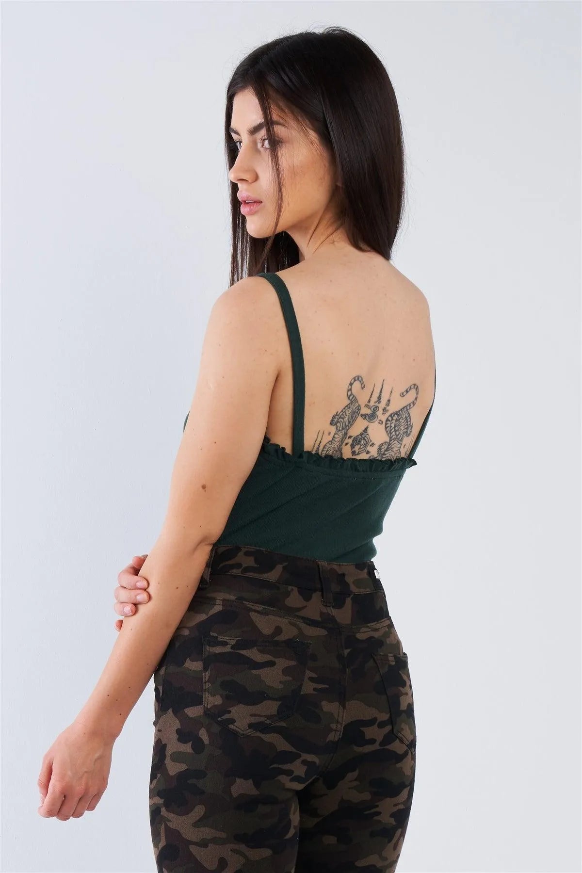 Hunter Green Ruffled Neckline Spaghetti Strap Bodysuit /3-2-1