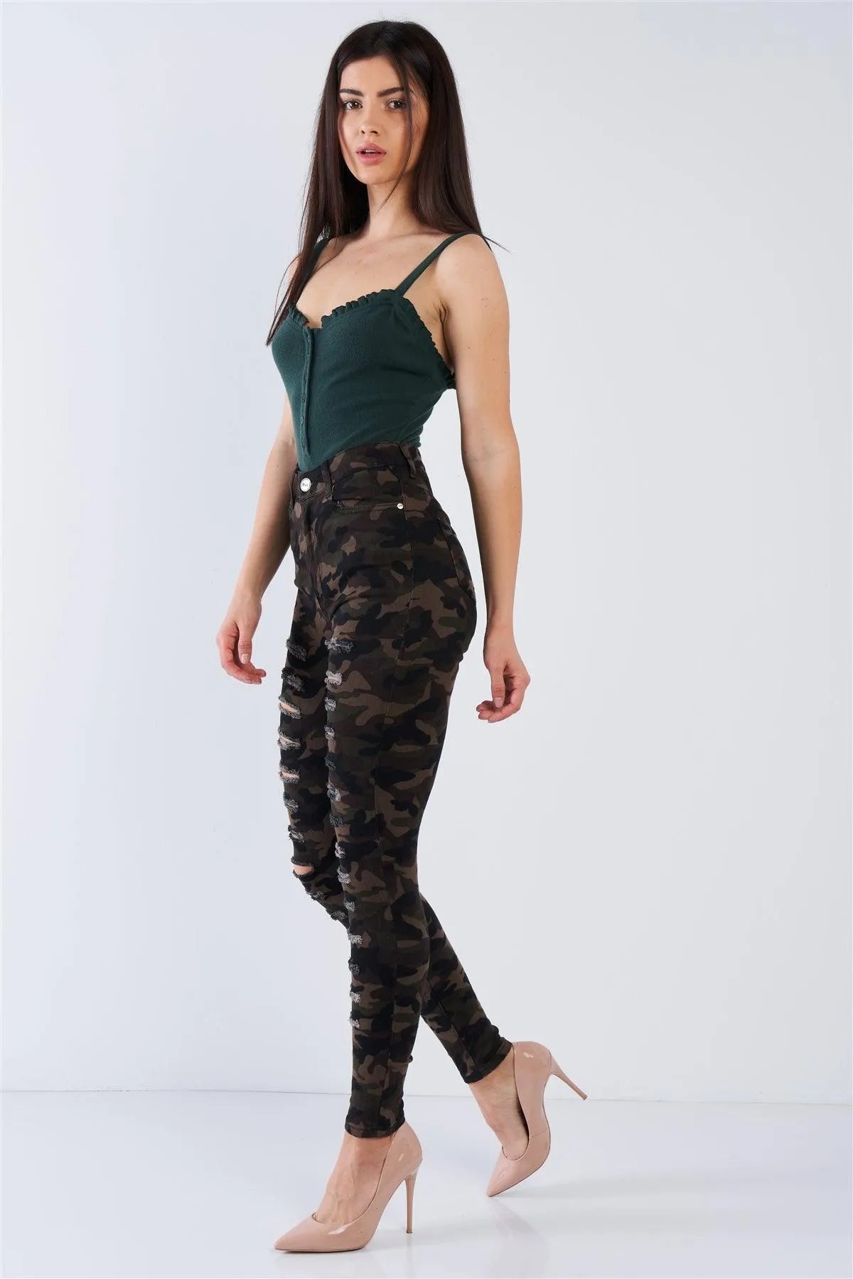 Bodysuit Features: Solid, hunter green, ribbed, ruffled neckline, spaghetti strap, button up, crotch snap closure, stretchy, unlined, summer, girlyModel is 5'7 and wearing a Small ( Bust: 32B", Waist: 23", Hips: 35")Item Measurements: Length: 28", Bust: 28"Item comes pre-packed with hang tags True to Size