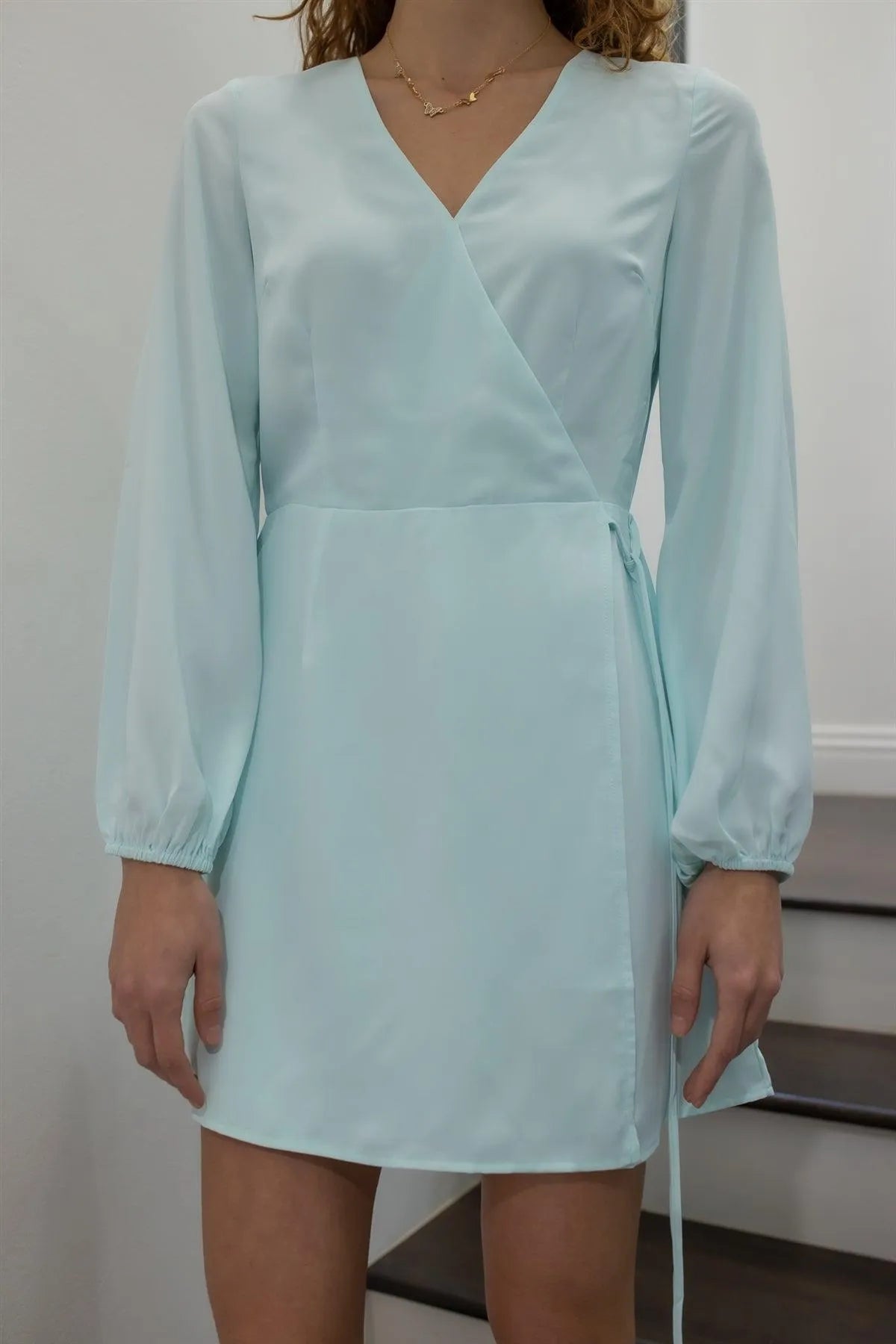 Ice Blue Wrap Side Self-Tie Mini Dress /1-1-2-1