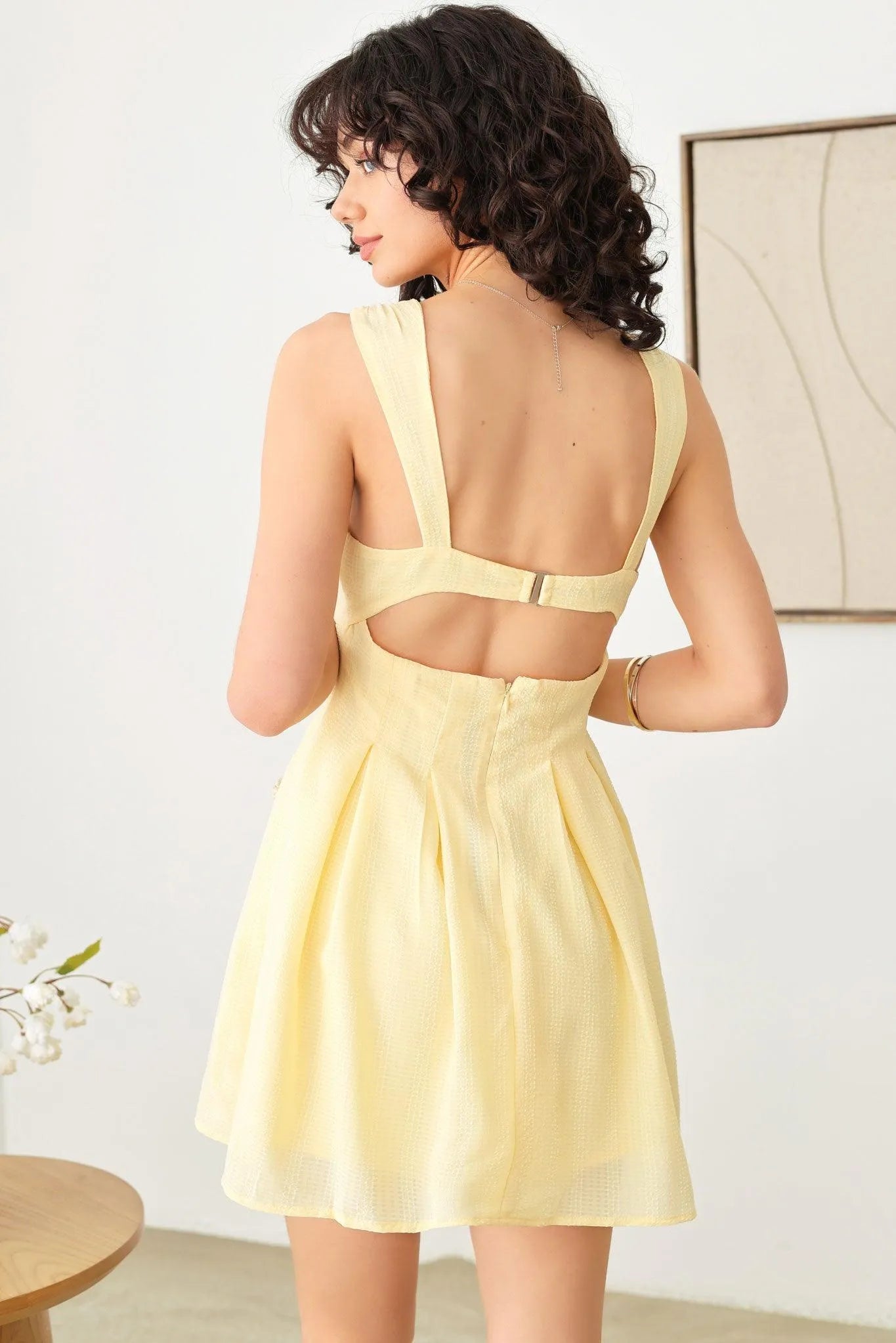 Boho Pleated Ruched Bust Back Clicker Closure Mini Dress