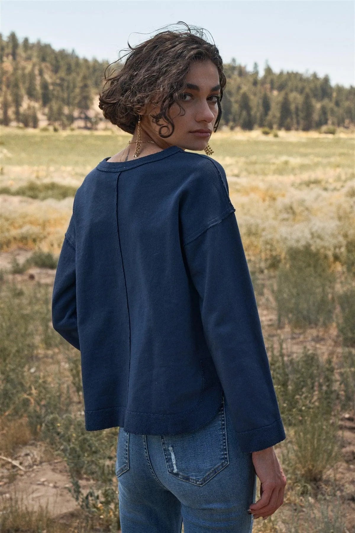 Indigo Inside Out Imitation Long Sleeve Dropped Shoulder Top /1-1-2-1