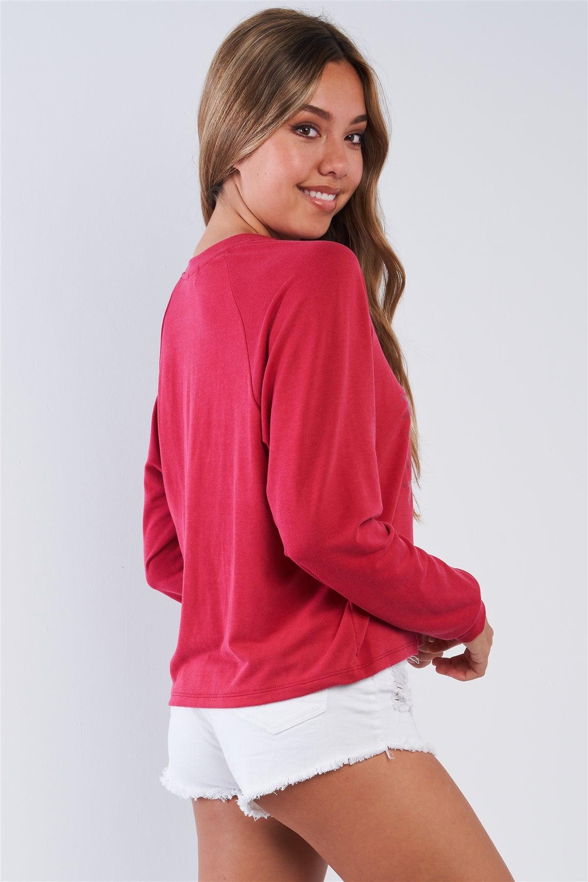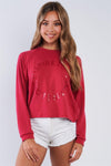 Women sweater: Red, solid, long sleeve, graphic writing, "inspire love", crew neck, fleece, loose fit.