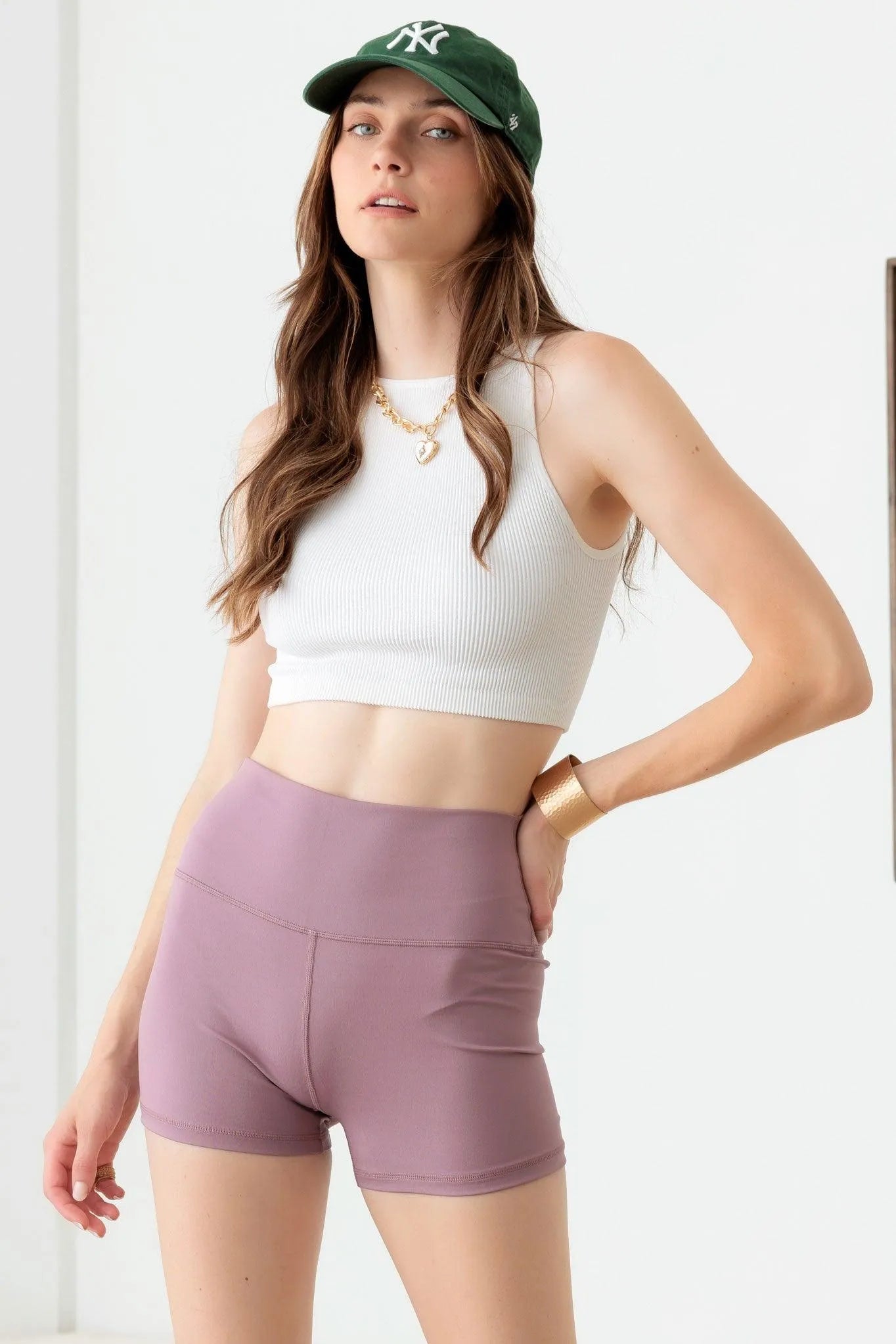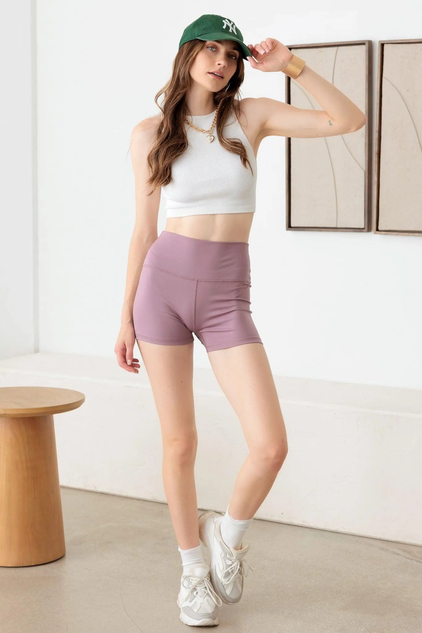 Mineral Wash Ribbed Tummy Control Biker Basic ShortsVendor:Le Lis