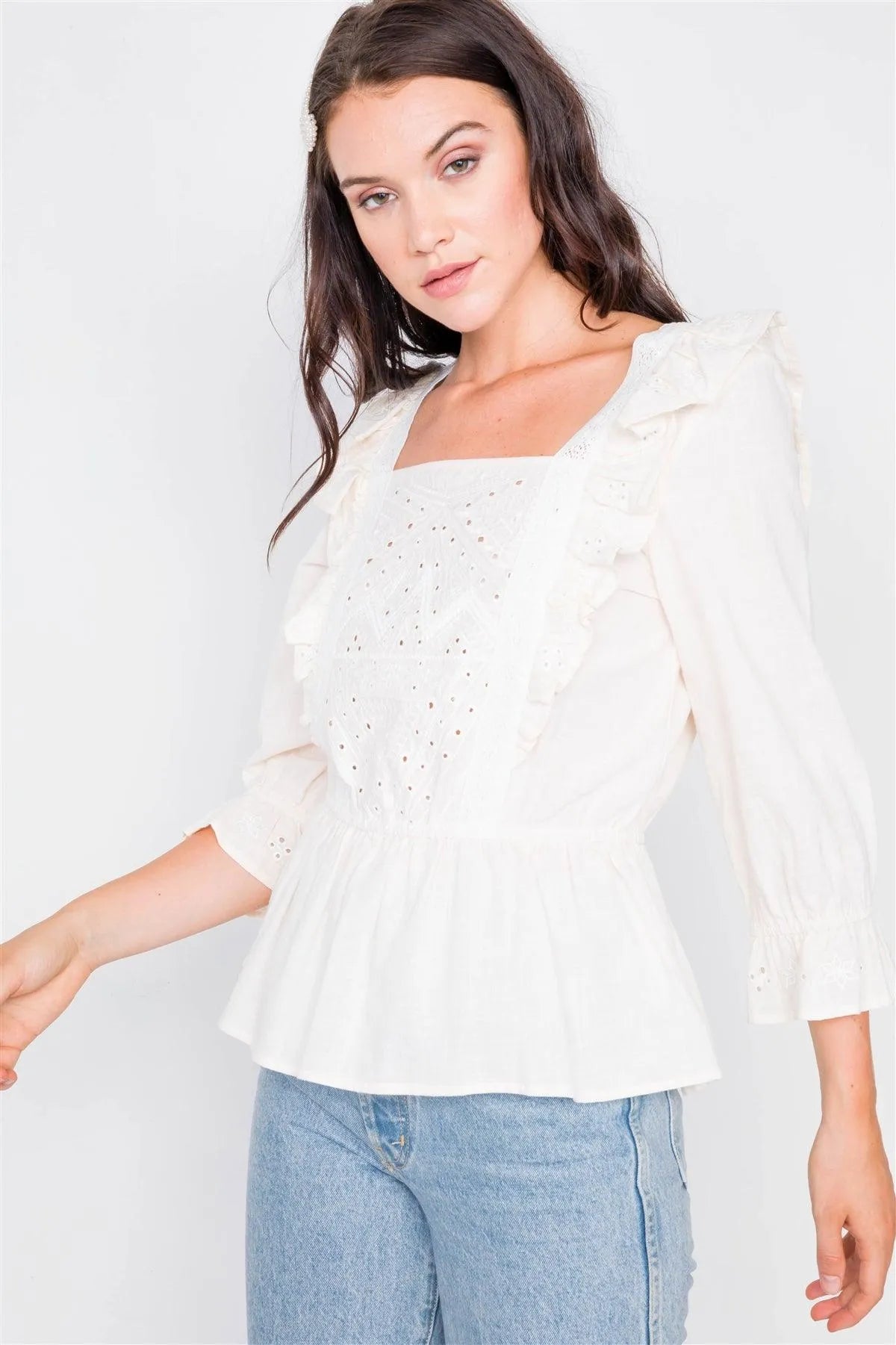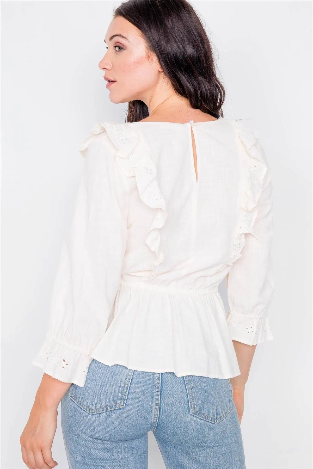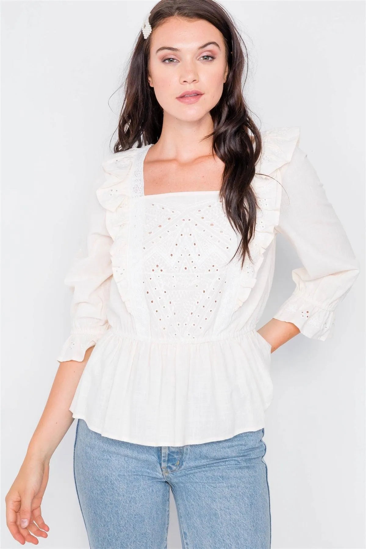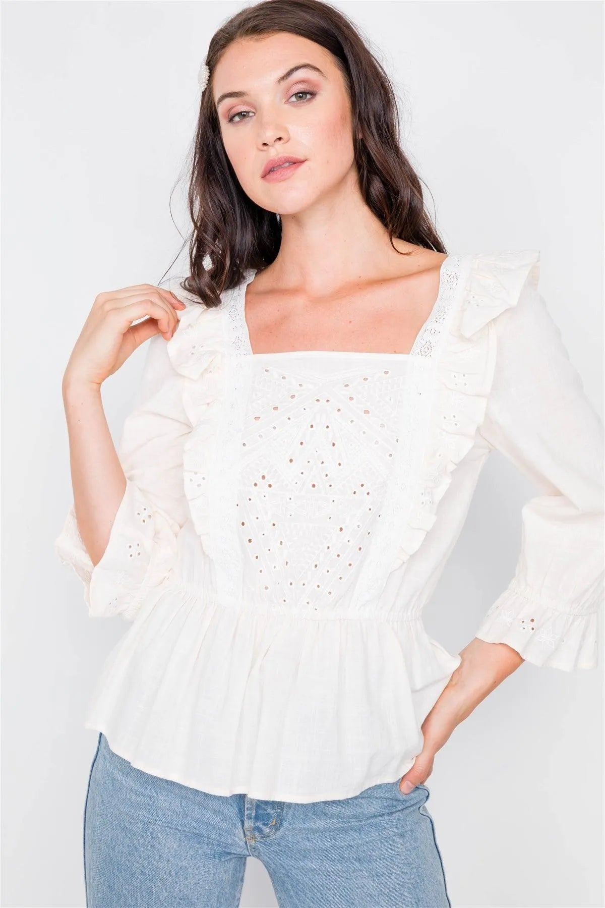 Ivory Aztec Eyelet Flounce Top / 2-2-2