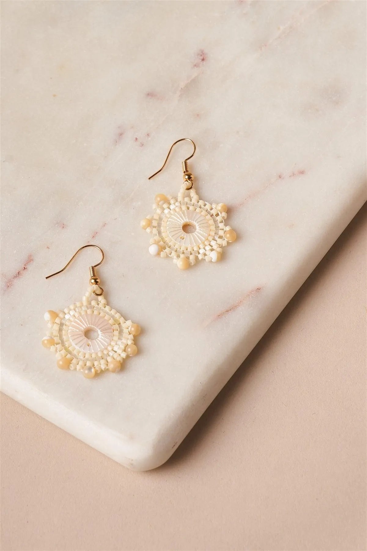 Ivory Beaded Circle Hook Drop Earrings /1 Pair