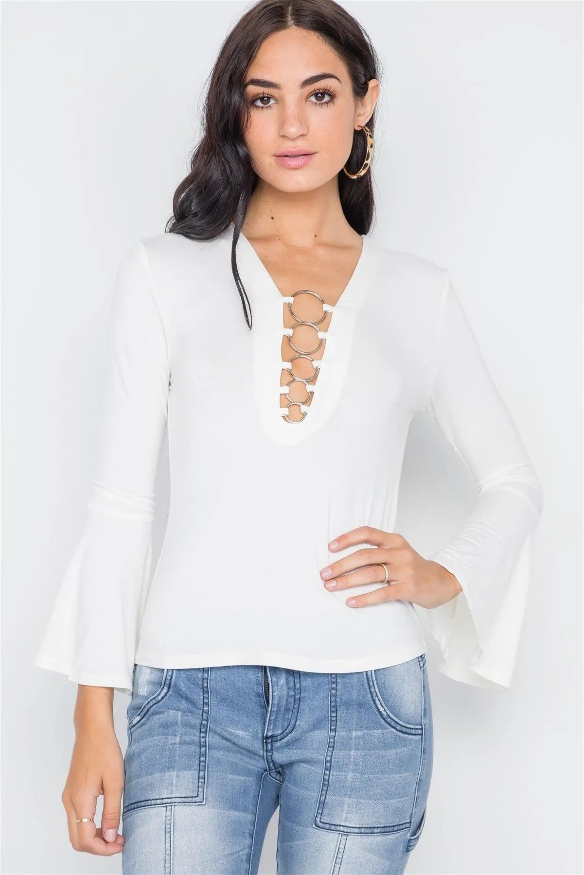 Ivory Bell Sleeves O-Ring Top /2-1-1