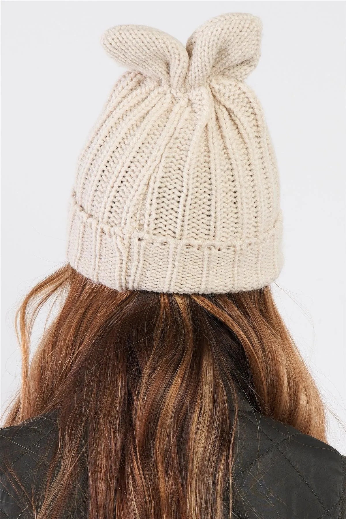 Ivory Bunny Ears Detail Woven Winter Beanie /3 Pieces