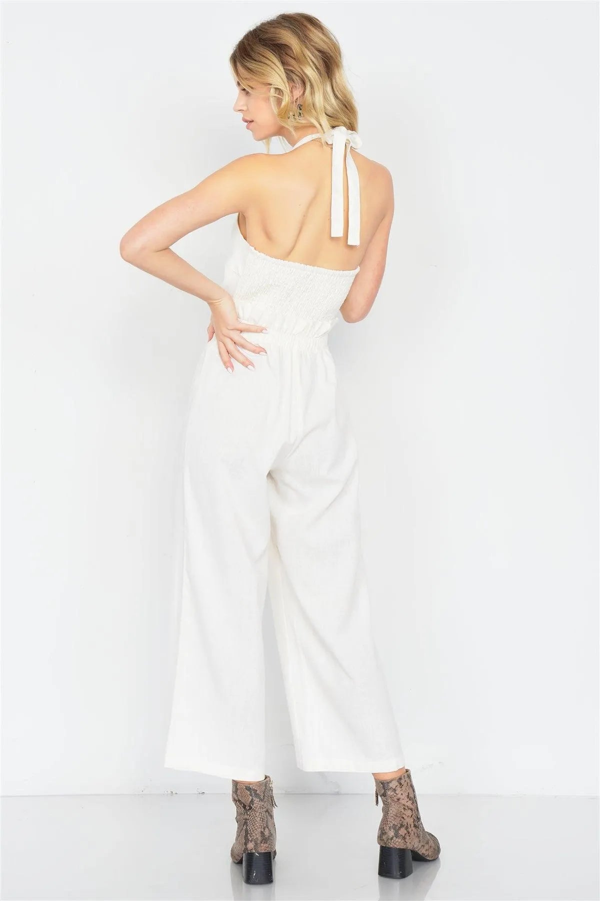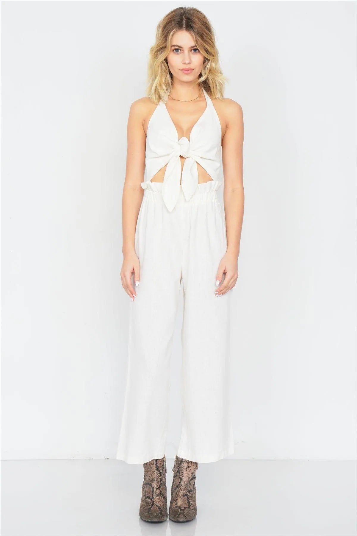 Ivory Cotton Center Cut Out Ankle Wide Leg Jumpsuit /3-2-1
