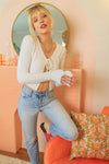 Cropped V-Neck Long Sleeve Soft Knit Cozy Boutique Fashion SweaterVendor:DOUBLE ZERO