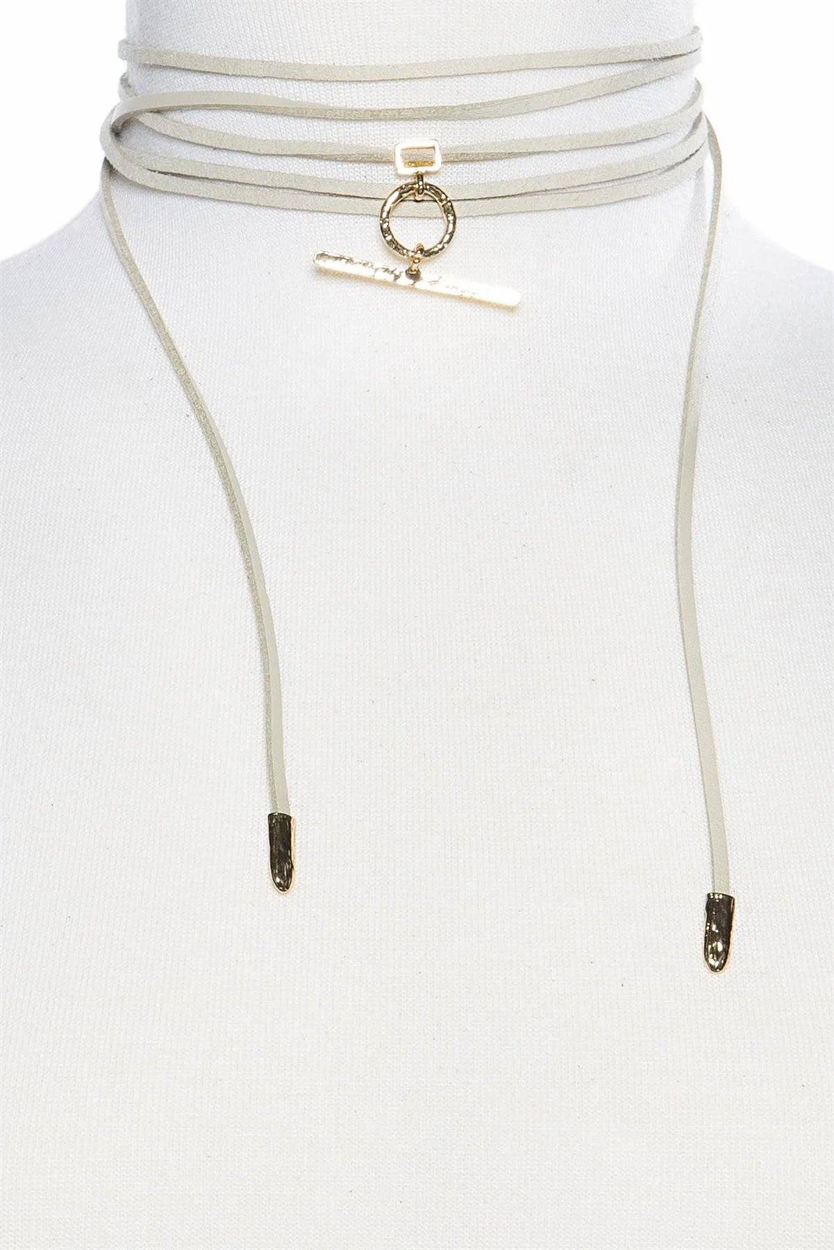 Ivory Layered Suede Wrap Choker With Bar Pendant And Metallic Ends /7 pieces