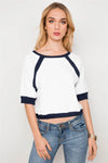 Ivory Navy Dolman Sleeve Ribbed Cropped Top /2-2-2