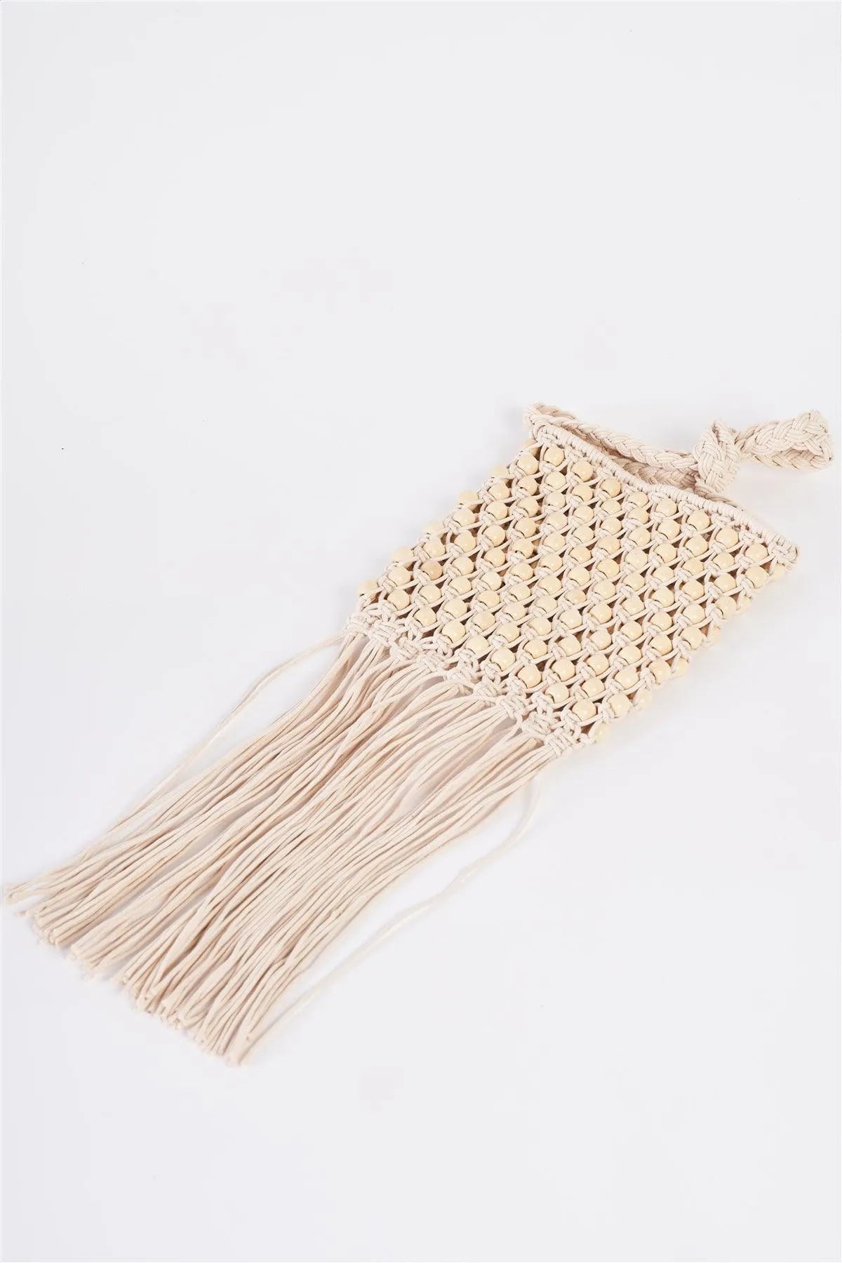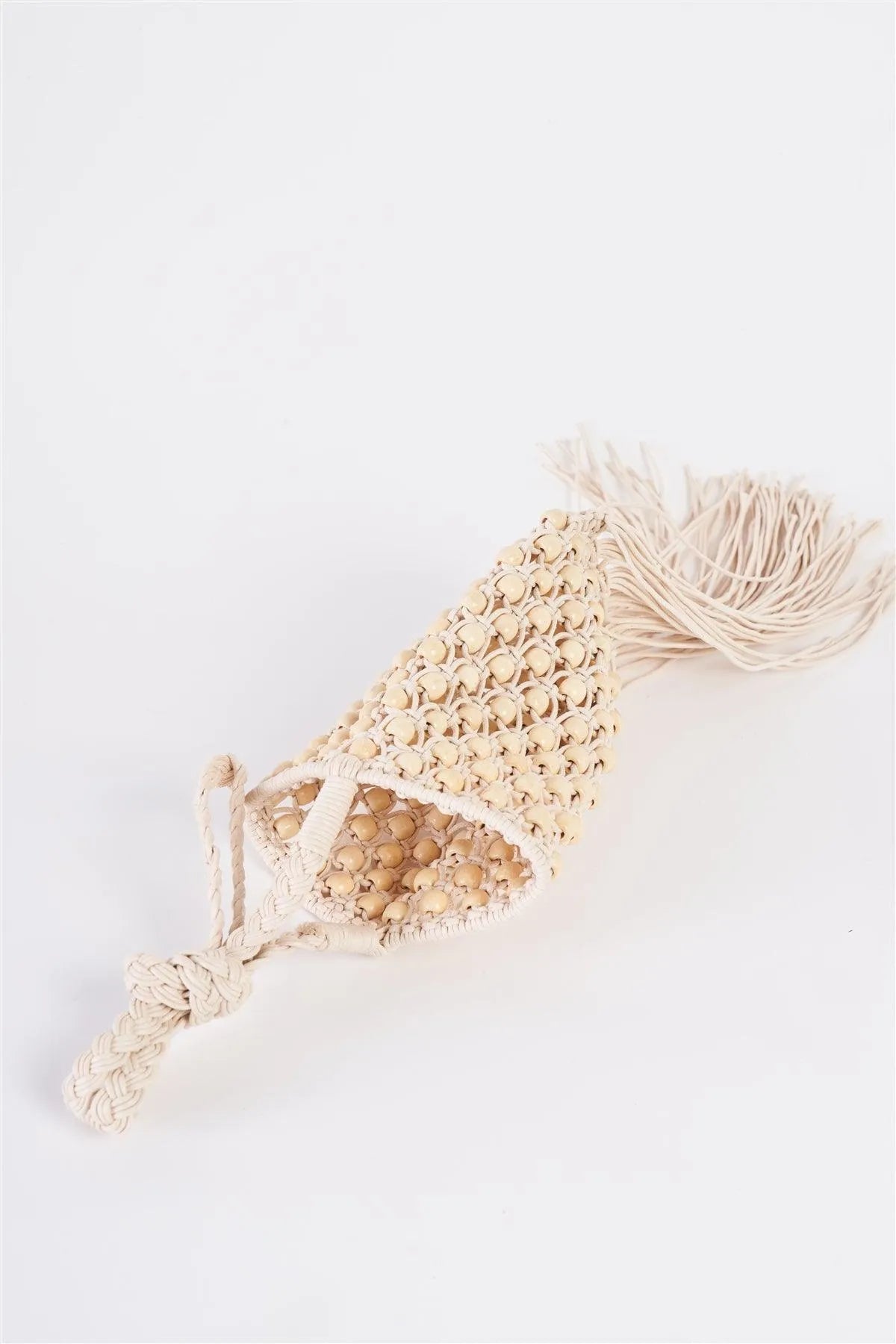 Ivory Net Cable Fringe Wooden Beads Braided Crossbody Bag /1 bag