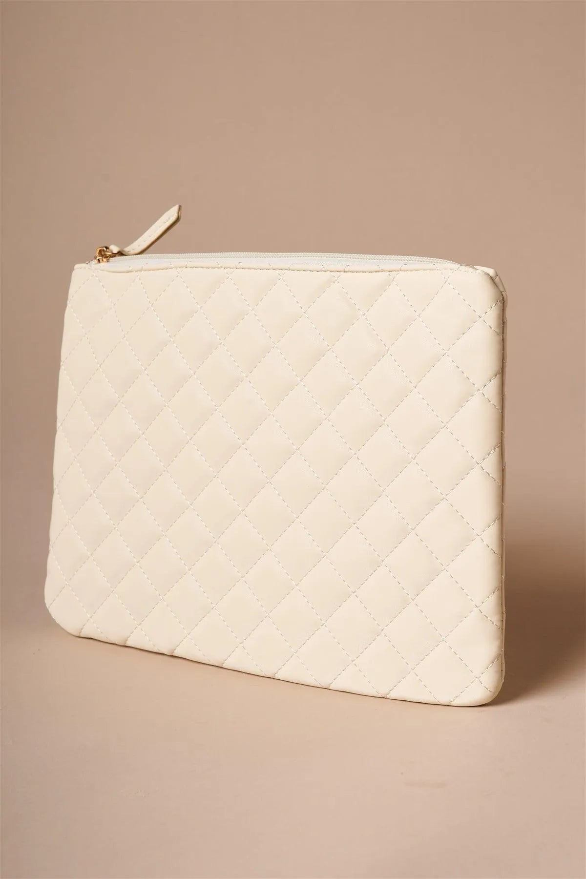 Ivory Quilted Rectangle Pouch Bag /3 Bags