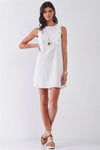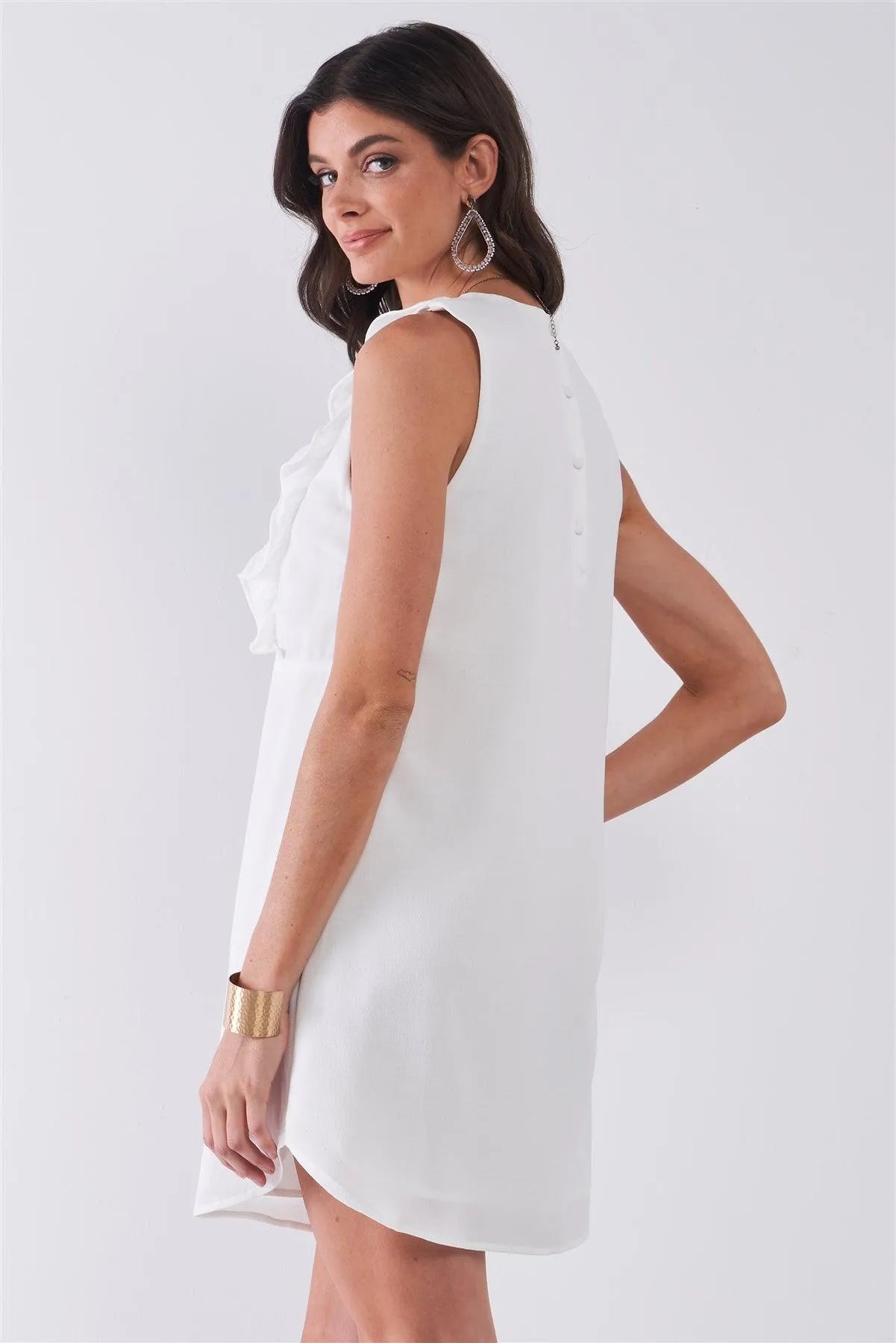 Ivory Round Neck Sleeveless Ruffle Front Loose Fit Mini Dress /1-2-1-1
