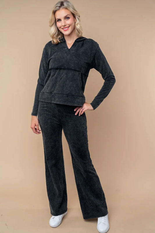 Acid Mineral Wash Wide Leg Comfortable Elastic Waist Lounge PantsVendor:White Birch