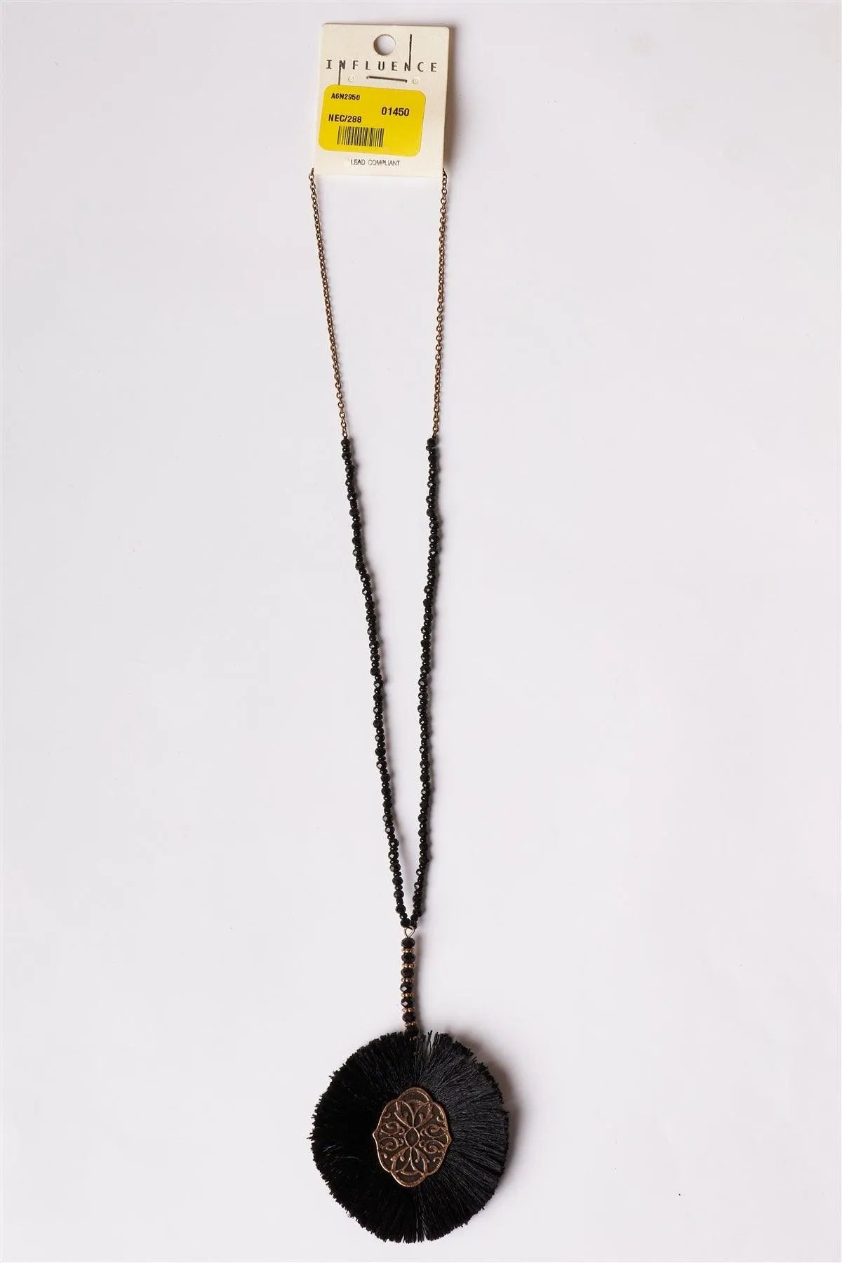 Jet Black Etched Tassel Pendant Necklace /1 Piece