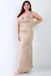 Junior Plus Beige V-Neck Sleeveless Maxi Dress /1-2-1