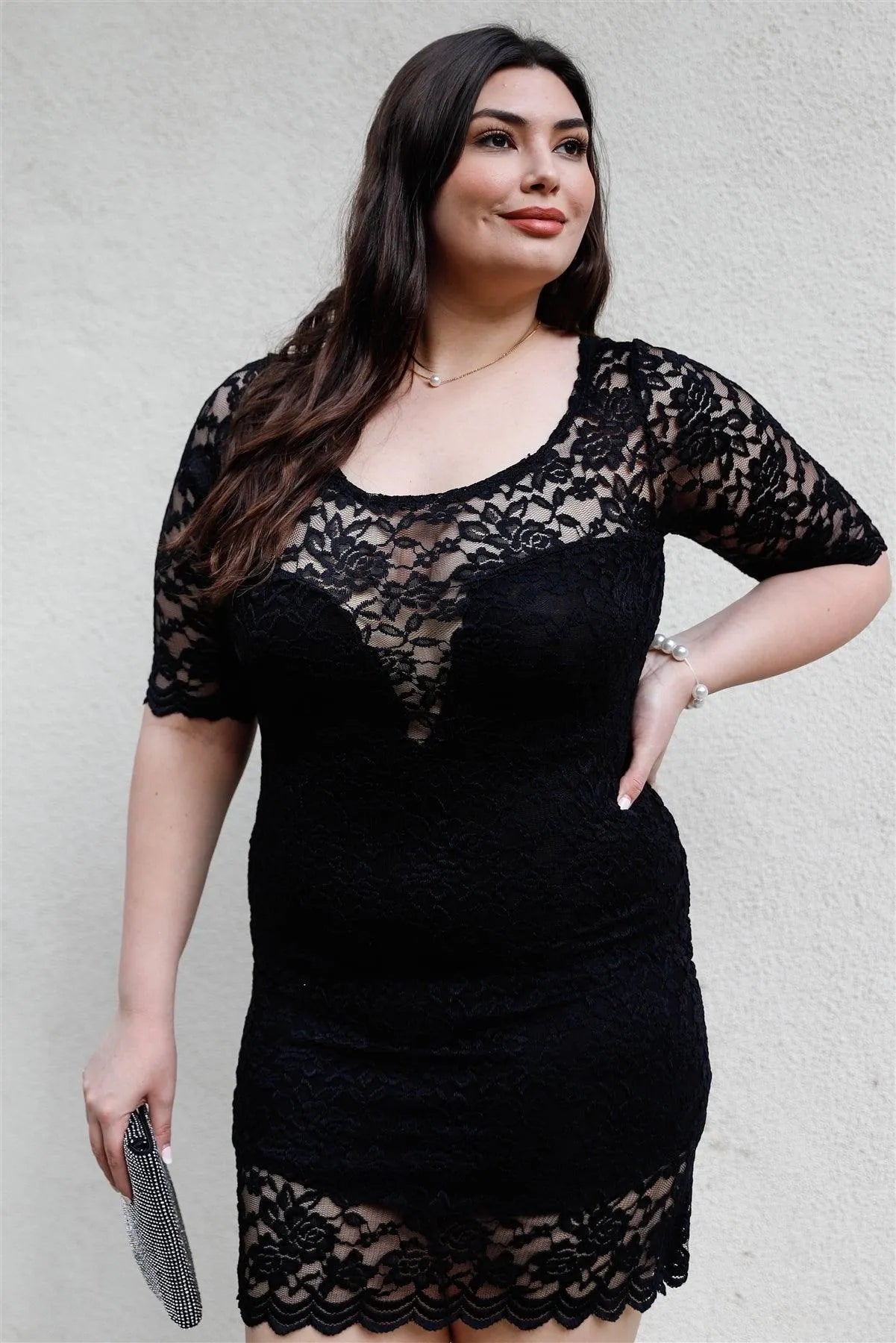 Junior Plus Black Lace Mini Dress /2-2-2