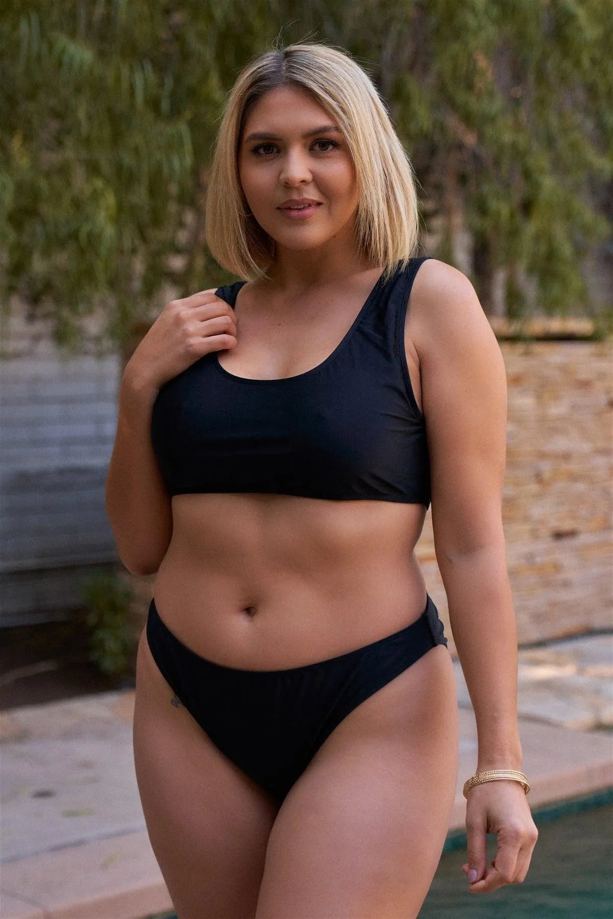 Junior Plus Black Minimalistic Sleeveless Sports Top & High Waist Bottom Two-Piece Bikini Suit /4-2-1