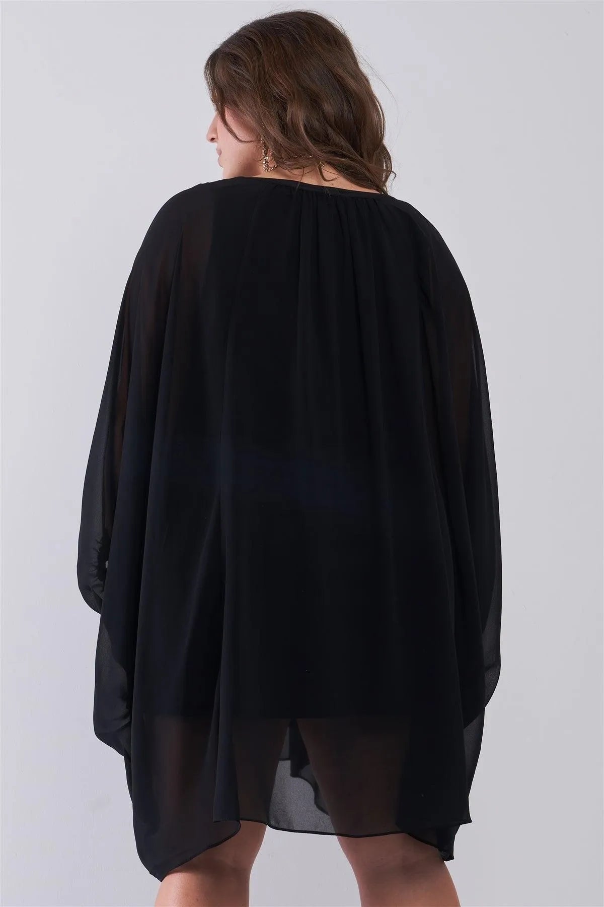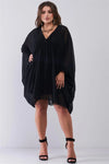 Junior Plus Black Poncho V-Neck Gathered Front Long Sleeve With Elasticated Cuff Mini Dress /1-2-3